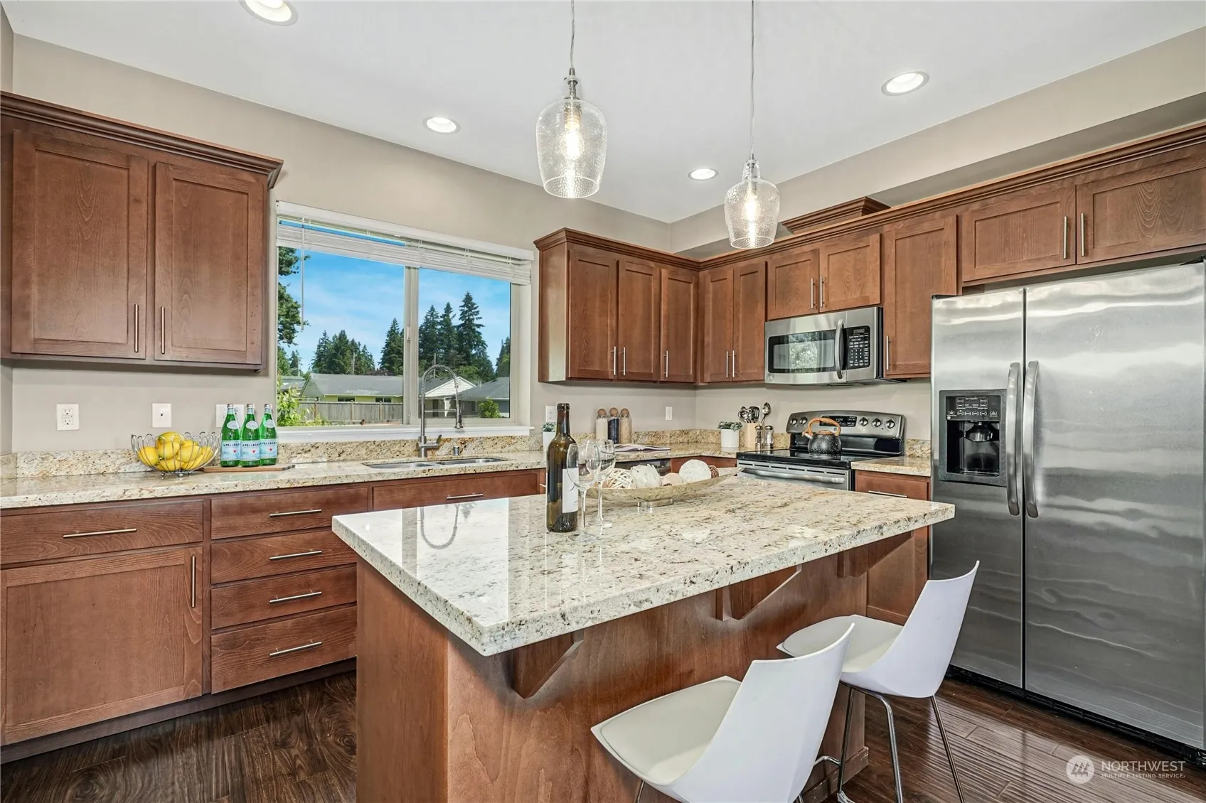 Perfectly situated just blocks from the light rail—ideal for commuters! The open concept main floor spills out to a private deck, primed for summertime gatherings. With a neutral color scheme, it is easy to imagine your life here and creating your very own special space: The spacious den/bonus room is equipped as your work-from-home haven or bonus room (gym? media? play?). Enjoy updated light fixtures throughout, great natural light, and a two-car garage primed with storage. Neighborhood delights will cater to your every whim: Double D Meats, Diamond Knot Brewery, parks, tennis, pool and more! With close proximity to the Edmonds waterfront, Kingston ferry, and Highway 99.