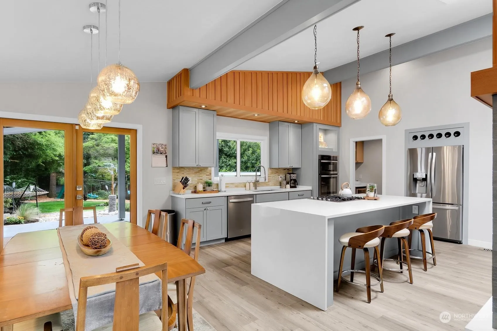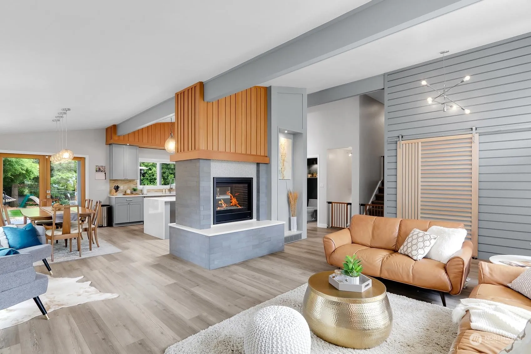 Summer is here and this fully remodeled, architect/interior designers own home has the backyard to celebrate! Private with SW light, this stunner offers 2 patios (1 covered), 2 decks, built-in gas fire pit, amazing “mini-me shed, new hot tub, outdoor movie projector & exquisite landscaping for year round fun! Connecting with nature, this one-of-a-kind tri-level is exceptional & filled w/custom details. Vaulted, beamed interiors exude timeless sophistication. Custom gas fireplace w/VG Fir accents anchors the great room offering impeccable entertaining. Dream island quartz kitchen w/spacious walk-in pantry w/wine fridge. Impeccable baths. Fabulous owners suite. Custom doors. AC for year round comfort. New tank less H2O heater. Simply perfect!