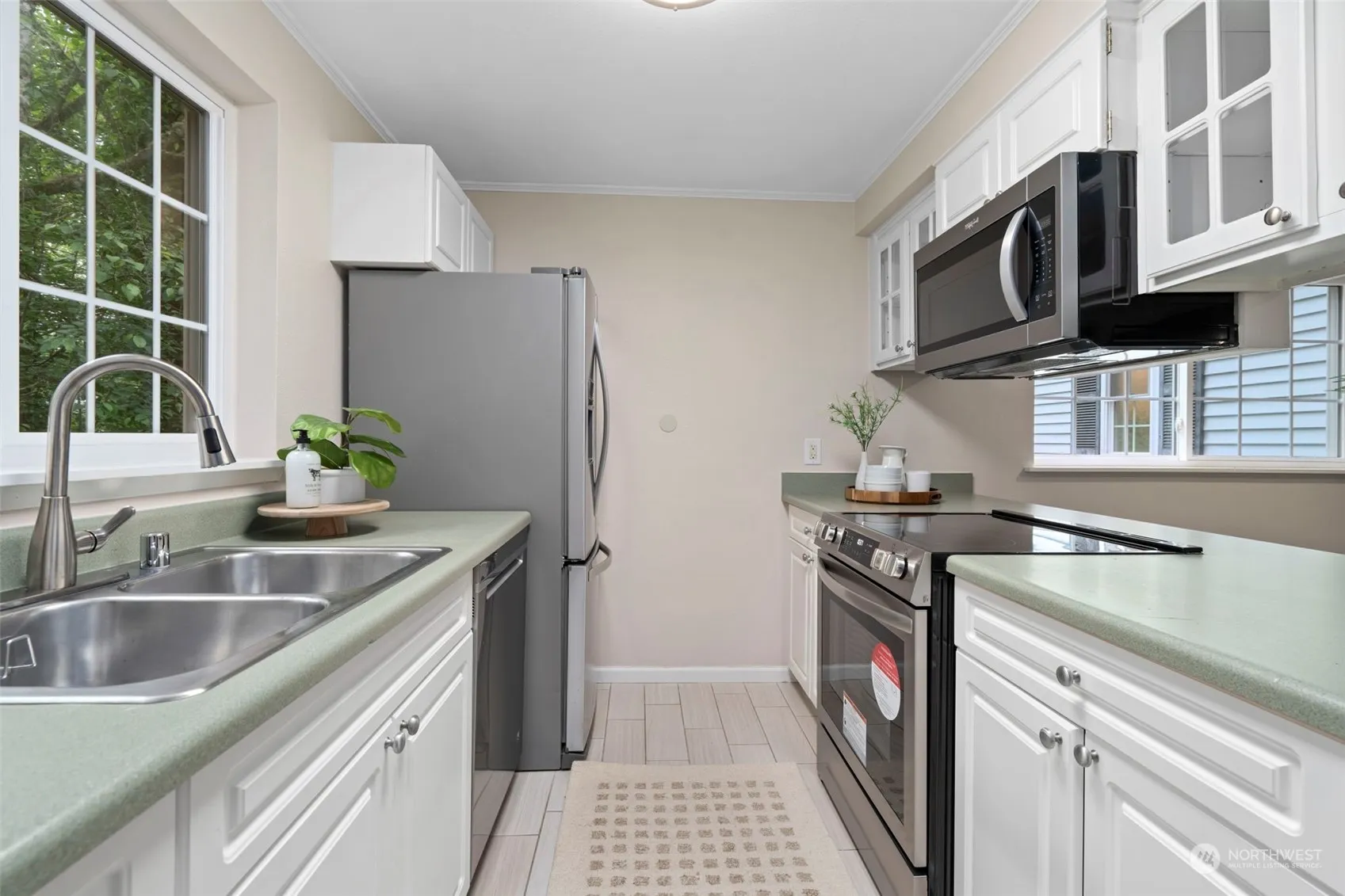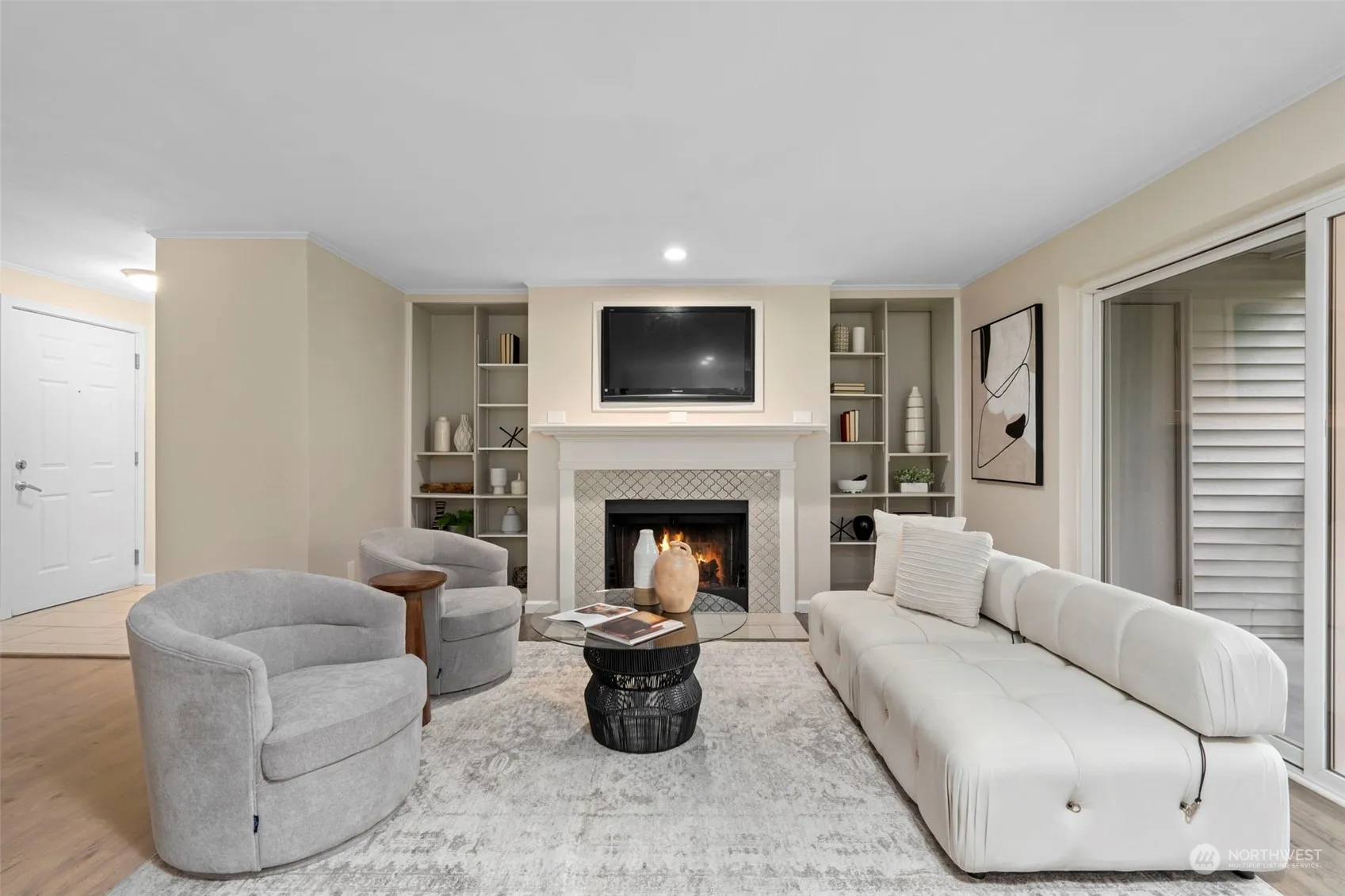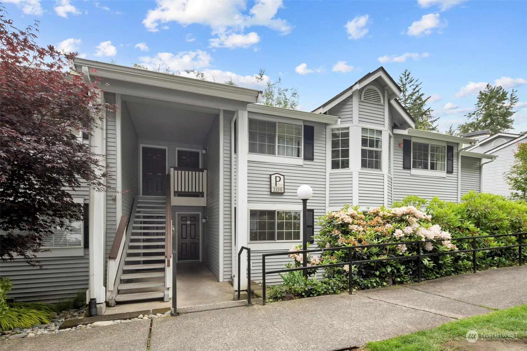 Amazing and rare opportunity at Markland Woods. This 4 Bedroom ground floor unit has so much to offer. From the outside – A private garage, 3 additional storage closets, 1 covered and 1 uncovered reserved parking spots and a back deck with private green space views. Step inside – An open floorplan with style and functionality. New Appliances in the Kitchen and multiple upgrades in both bathrooms. Fireplace with Beautiful tile surround and built-in shelving. Easy to maintain flooring throughout. Dedicated Laundry room. Desirable well run community with all the ammenities: pool, playground, sauna, fitness and lounge space. Conveniently located near Cedar plaza shopping center & just minutes to I-5 and the newly opening Link Light Rail in MLT.