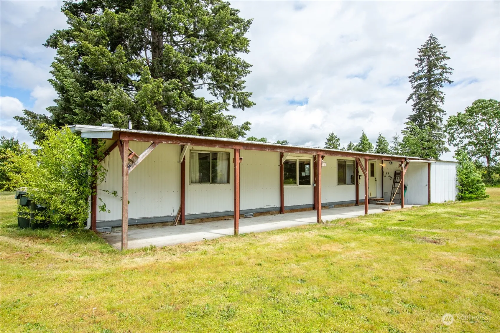 Wonderful property with a single wide manufactured home and a huge shop with two large covered areas attached for your toys or RV’s. All of this on 1.74 flat, park-like acres with it’s own well. Home is a very livable 2 bedroom, 2 bath. Newer dishwasher, tubs and flooring. You would be comfy living here while you build your dream home in this neighborhood of luxury homes. Shop is approximately 28′ x 34′– has 220v and engine lift. Start that hobby/biz, store your stuff, or fill it with toys. Carport covered parking spaces attached to both sides of the shop are 14′ X 34′. Great location, close to town, across the street from a private airfield, and EZ commute to JBLM. Peek-a-boo Mount Rainier view. Come see for yourself–the dream is real.