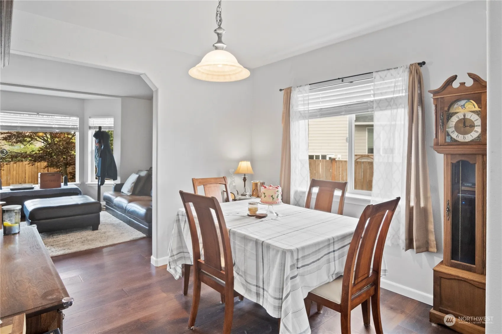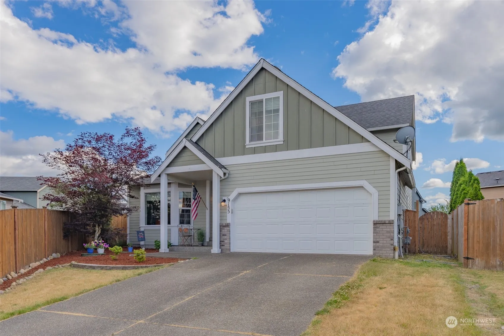 Nearly a quarter of an acre: the largest lot in the neighborhood! Bay window in Formal Living rm with high ceiling & pet-proof flooring that continues through Formal Dining and into open Kitchen with peninsular counter with eating bar. Gas fireplace in Family rm with TV alcove above. Unique Primary Suite: attached bonus rm for seating or dressing area plus private bathroom with corner soaking tub & walk-in shower. Three additional bdrms also located on upper level. Stretch out in fully fenced back yard, enjoying the outdoors on expansive deck. Bring your gardening dreams to life or make the most of playing on the lawn. Desirable location: minutes to town w/access to back roads for easy commuting to Oympia & JBLM. Welcome home!