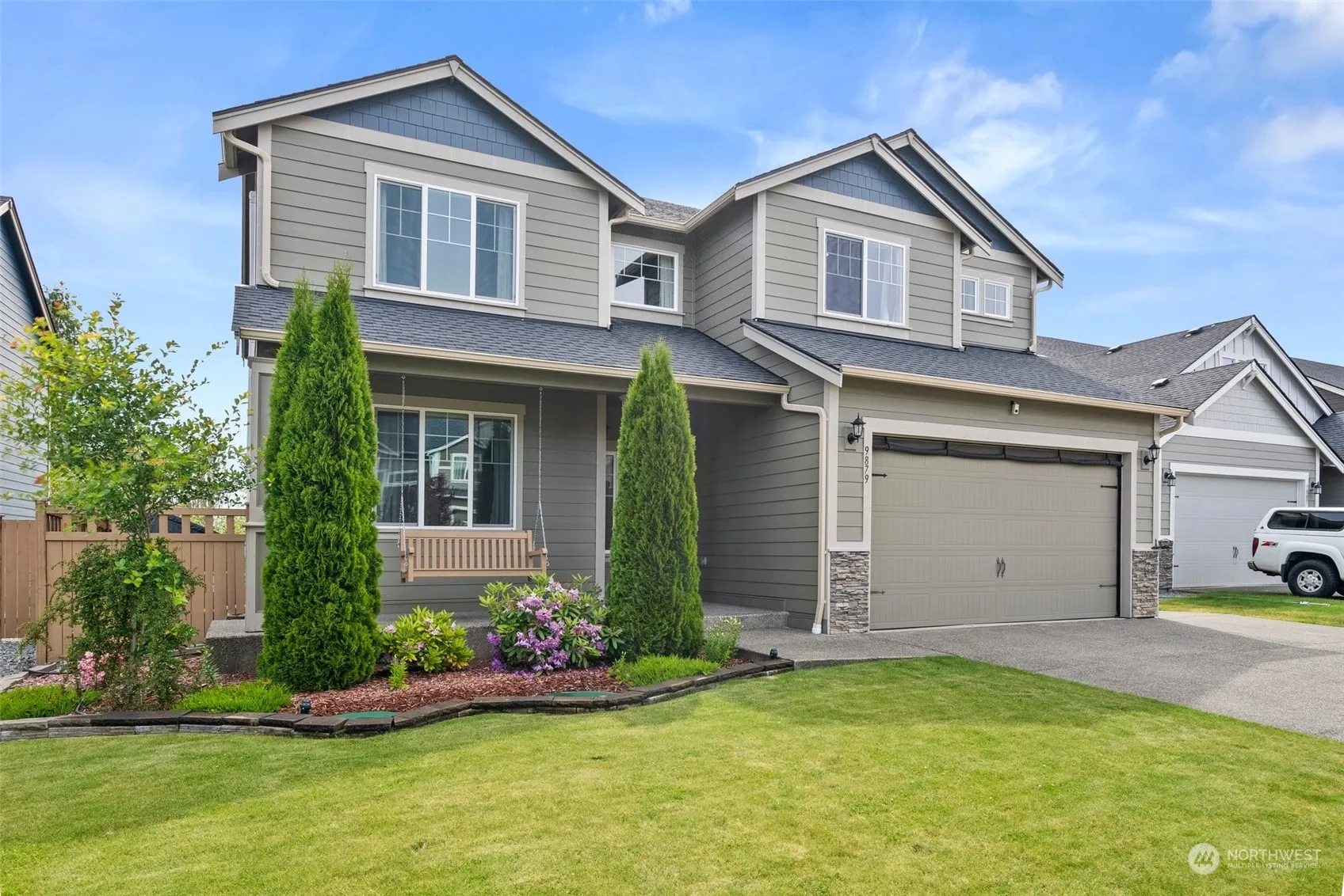 Experience the beauty of the PNW with stunning views of Mt. Rainier from the comfort of your own home! This spacious home boasts nearly 3,000 sq. ft. with large walk-in closets and ample storage. It has a large bonus room and an office. There’s plenty of room to work from home. The garage is heated and screened, making it comfortable year round! This home has all the desired amenities expected with a newer home: SS appliances, quartz countertops, gas fireplace, A/C, security system, and a bonus fridge in the garage. It’s minutes from town and a short drive to JBLM. Located in the friendly Tahoma Terra community, with several playgrounds in walking distance. This is your opportunity to revel in the beauty of Mount Rainier from your own home!