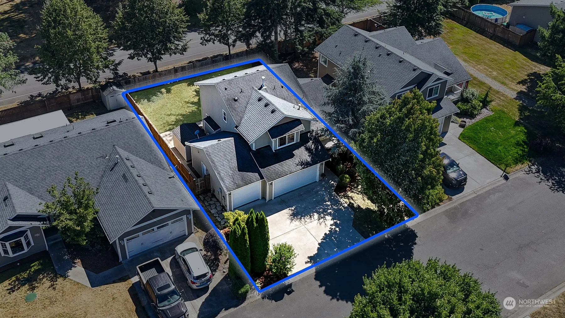 Give your new home a personal touch: Seller is offering $5k flooring allowance! Flowing main level living space: Formal Living rm welcomes you inside. Gas fireplace in Family rm, open to Dining & Kitchen w/ island counter & walk-in pantry. Second gas fireplace features in Primary Suite finished w/walk-in closet & private bthrm w/tub & walk-in shower. Two additional bdrms w/full bth. Back yard is fully fenced (with patio) & includes gate opening onto road behind for easy RV/trailer storage plus garden shed for your tools. Rare find in this desirable neighborhood: 3car garage. Community offers multiple parks/playgrounds and is moments from Cochrane Park and the Yelm-Tenino Trail. Close to schools, shopping, and an easy commute to JBLM.