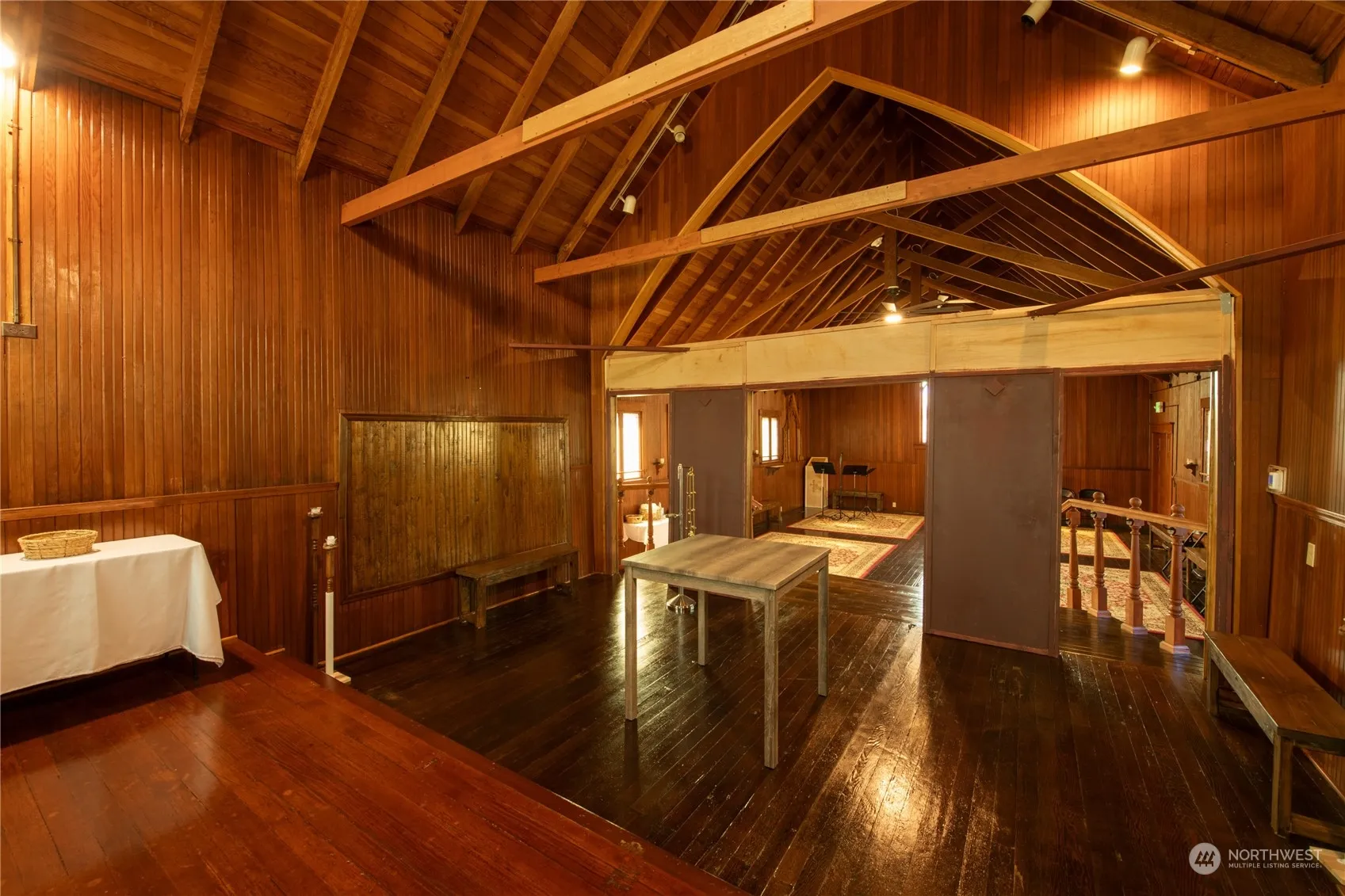 Here is your chance to own this beautifully restored church building that is in a residential zone of Elma. Coming in the front doors you have a small entry room and desk with double swinging doors into the gorgeous, vaulted ceiling, hardwood floored sanctuary. New extended platform and steps stained to match the beautiful wood floors. Right outside the sanctuary is a fellowship hall, two bathrooms and the kitchen. An additional fellowship hall and bathroom are on the other side. Playground outside! All new siding, trim, and paint outside. New interior paint as well. Electrical has been updated and new electrical to the shed, and so much more! The shed also has a new concrete slab making storage so easy! Roof is around 5 or 6 years old.