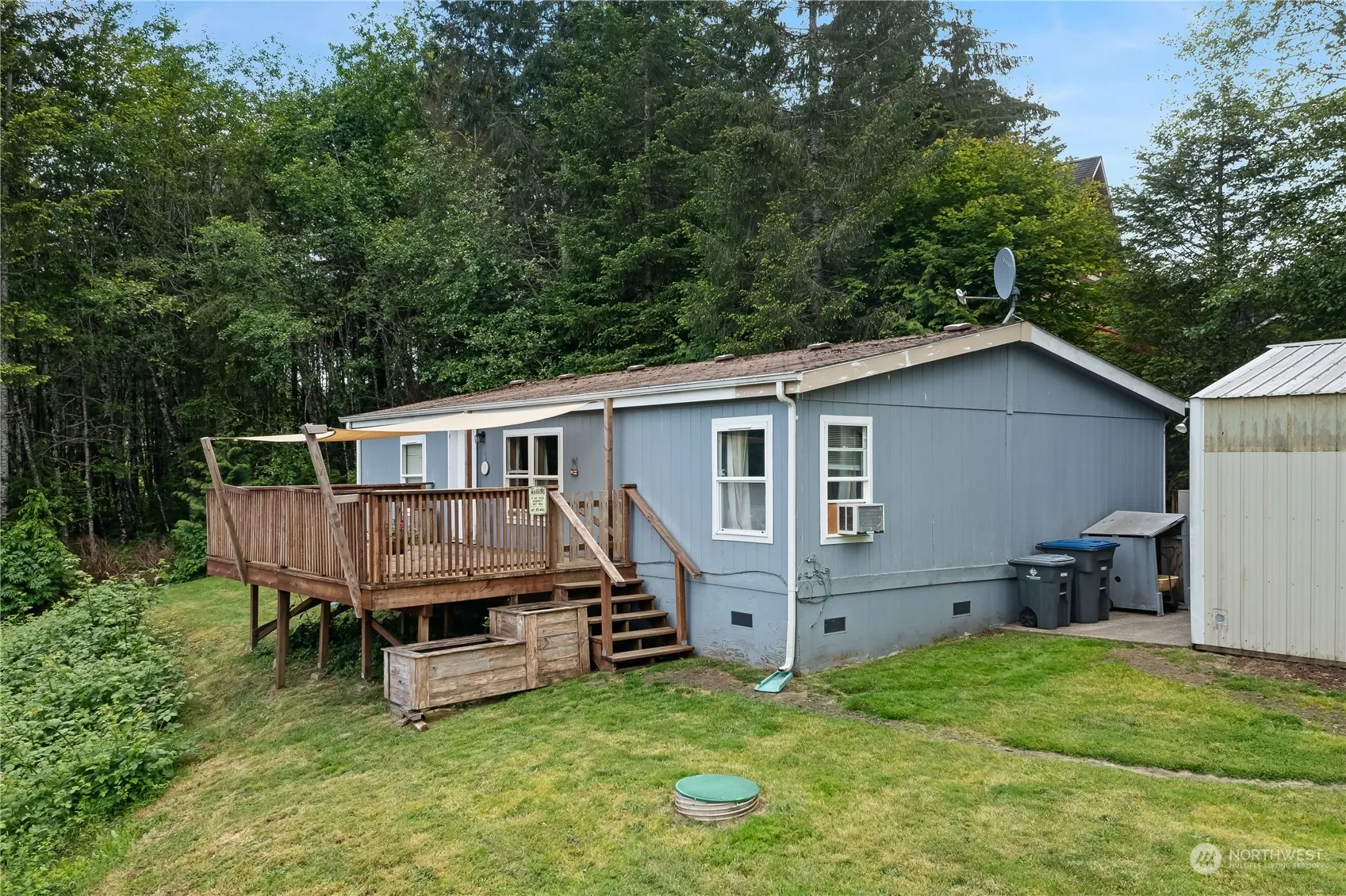 Embrace affordable living in peaceful Mason County with this 1994 manufactured home nestled in the serene Star Lake community. The 1080 square foot home boasts three bedrooms and two full baths, including a kitchen with eating space. Enjoy a spacious deck overlooking .23 acre lot, offering fire pit, outbuildings and plenty of parking. A large shop offering 576 square feet with wood stove and space for two cars. Community amenities include boat launch, park, playground, clubhouse, and golf/disc course.