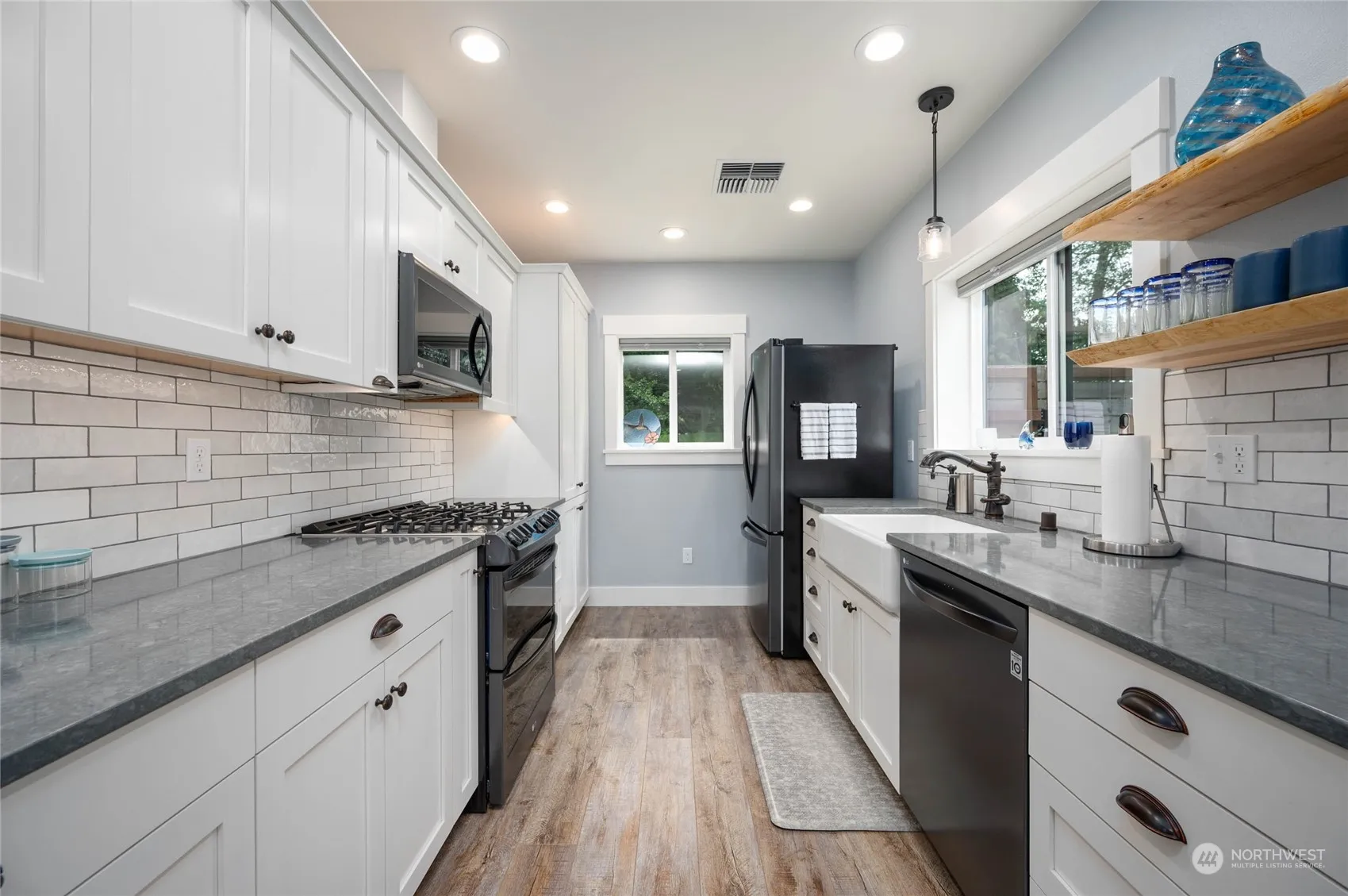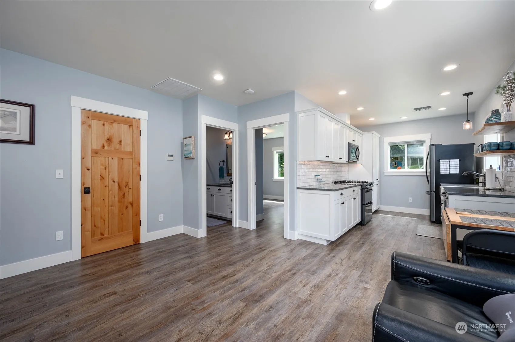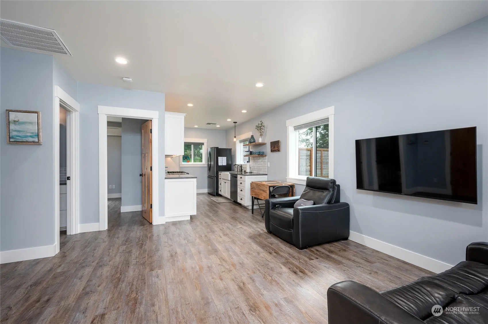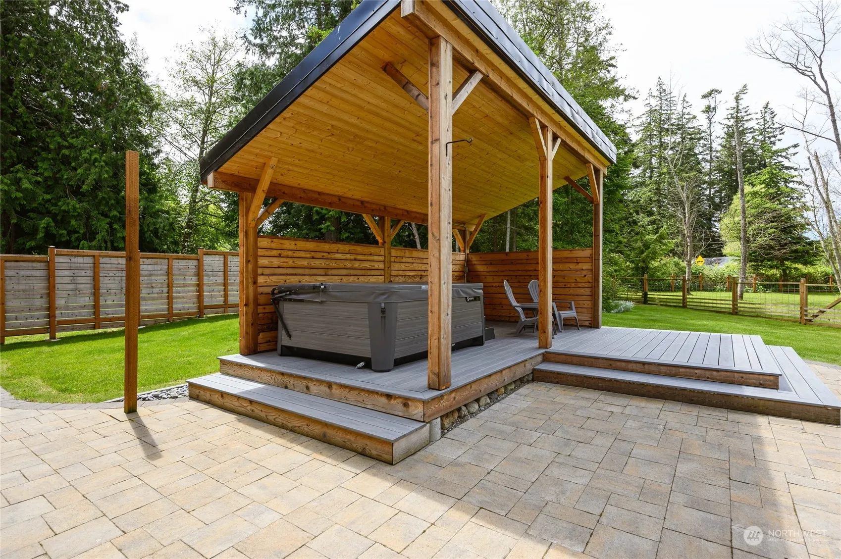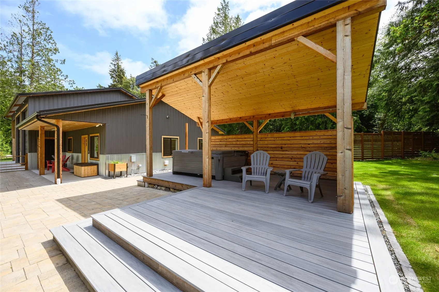 Samish Island Barndominium on shy 3 acres w/Beach Access…1 bdrm, 1 bathrm w/walk-in shower, kitchen w/all appliances, gas range, loads of cabinets, quartz countertops, laundry rm w/washer/dryer, deep sink, extra storage & luxury vinyl flooring throughout. Small office/extra storage rm, organizers in closets. Heated w/2 mini splits 1 w/duct work to main area. Spacious garage/shop (1044 sq ft) w/high doors, dog wash sink, 11.5’x36′ carport, 30-amp RV plug in both. Beautiful gazebo covers a 4-person hot tub & adjoining deck, 2 separate areas nicely fenced, RV space with water, power & RV clean out. Room to build a larger home. Private setting nicely landscaped & maintained, partially cleared & wooded. Generator w/auto switch.