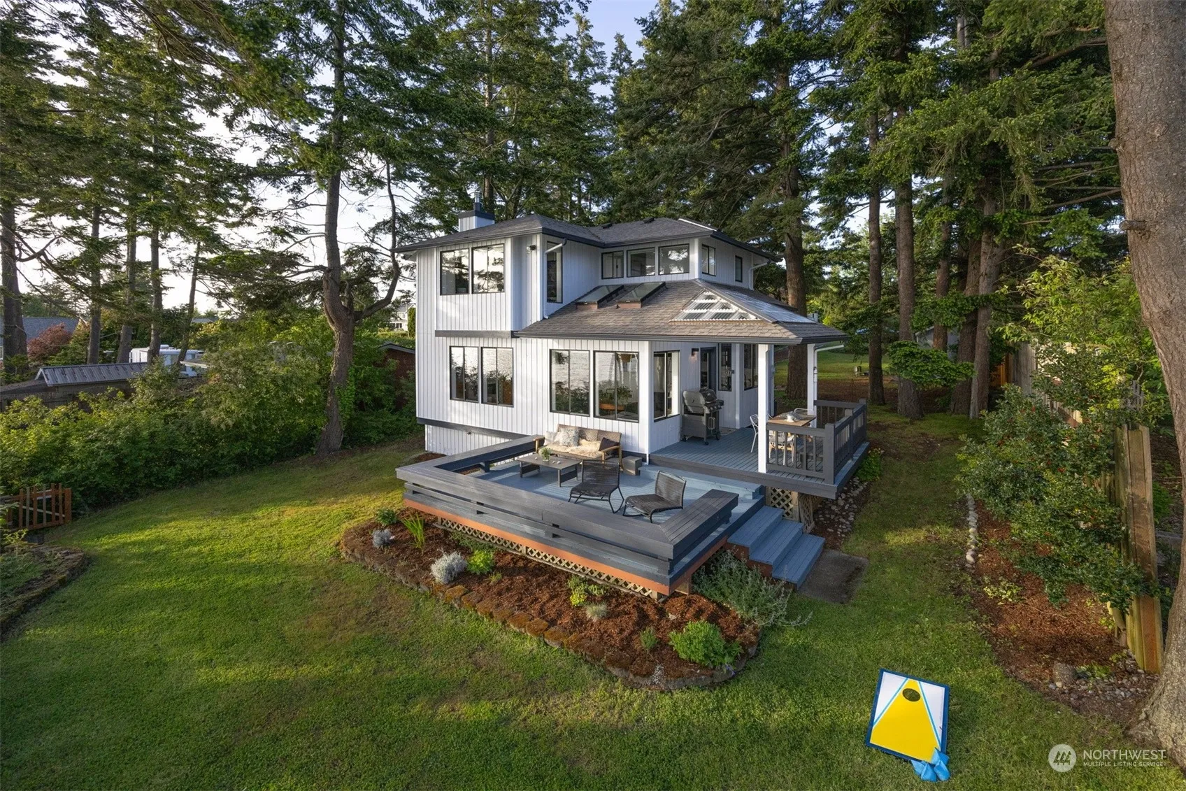 Island life w/ no ferry needed in this fully remodeled home (new roof, int/ext paint, bathrooms, heating & more – see supplements); Edison/Bow restaurants & shopping are minutes away + world class birding/biking. Glorious views of Padilla Bay & the SJ islands are seen from almost every room; 60’ of waterfront from your private bulkhead offers access for water sports or relaxing beach strolls. The huge deck & covered dining makes outdoor living possible almost year round. Relax in front of the large fireplace or in the cozy reading nook perfect for hibernating or napping. Or, escape to the sweet artist/yoga studio to create or recharge. 5 Star Airbnb history; Waterfront properties on Samish Island are rarely available so now is your chance!!