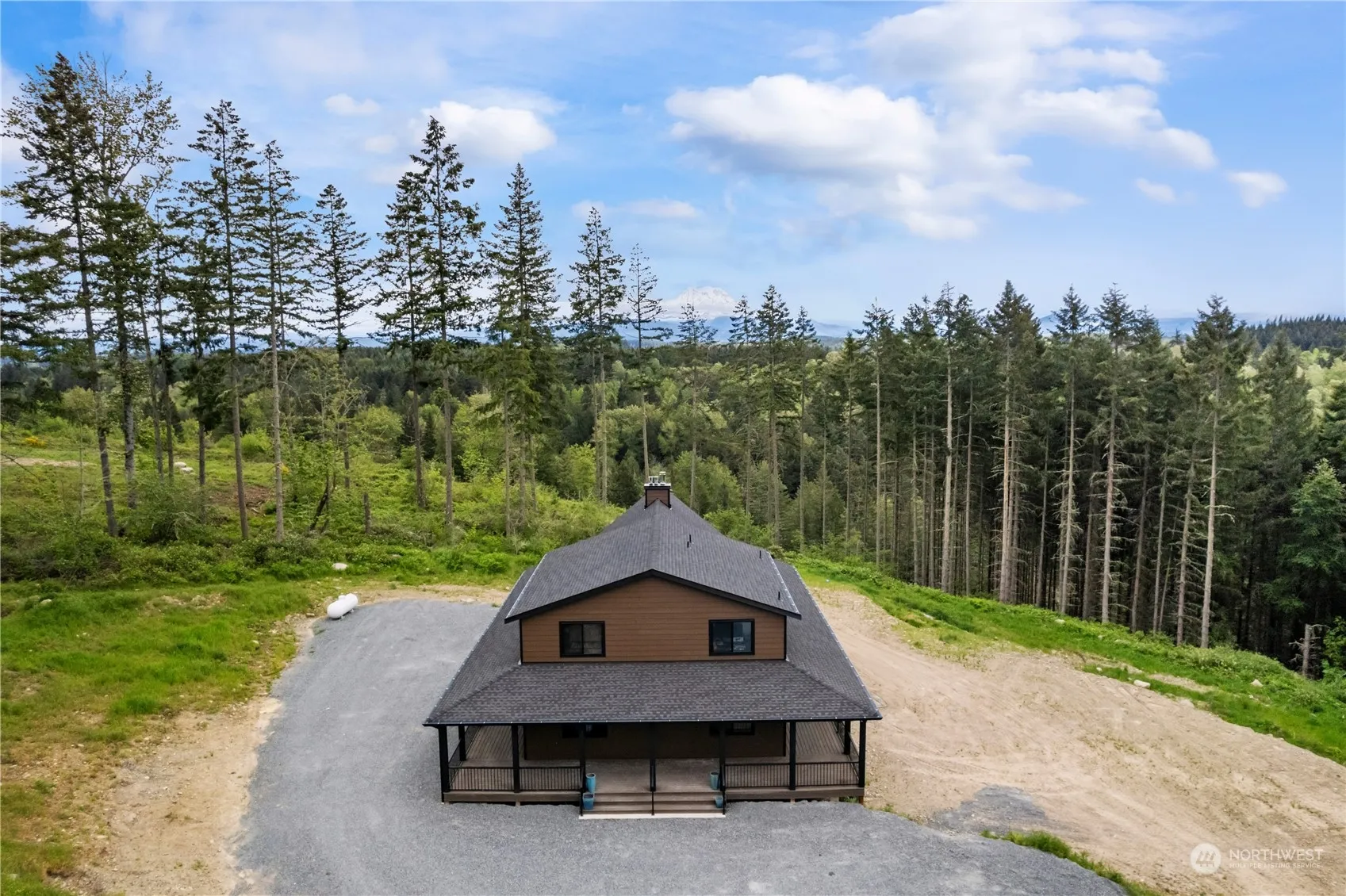 Discover your 20-acre oasis through a private gate leading to your newly built custom home designed for tranquility. Imagine waking to sunrises over Mount Rainier, nestled by your towering fireplace. Explore your nearly 1000-foot Tanwax Creek waterfront: welcome friends and family with RV parking complete with power. Spend the afternoons hosting barbecues on your 1856 sq. ft. covered wrap-around porch. As dusk falls, the daylight basement invites warmth and laughter around the wood-burning stove, perfect for s’mores and stories of the day’s escapades. Guests can stay in the spacious bonus room with an adjacent bathroom and shower. This estate is a haven for wildlife and outdoor lovers; it’s more than a home—it’s a lifestyle.