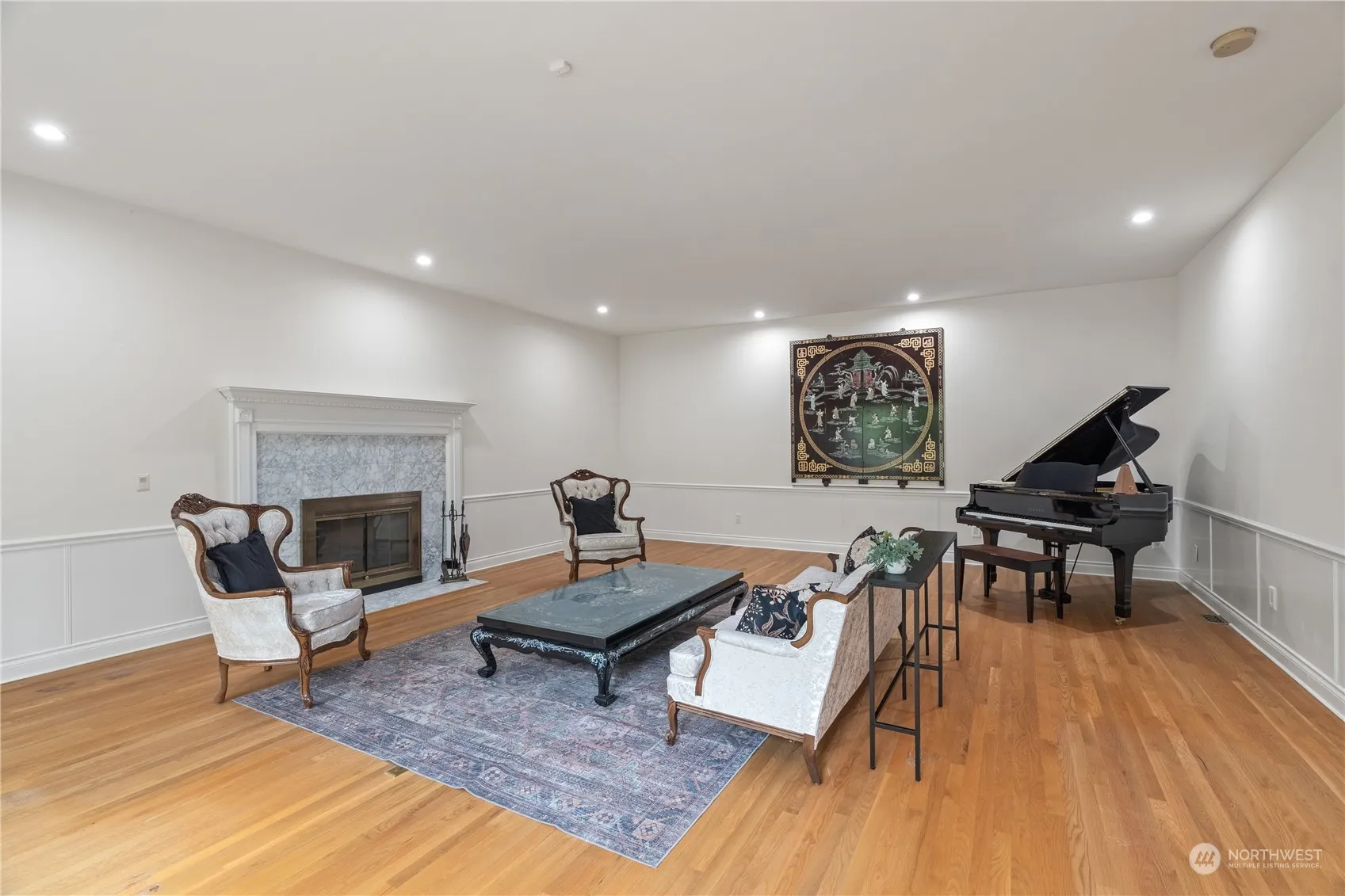 Welcome to the Harts Lake Community! This 1993 custom-built home blends elegance with privacy seamlessly. This luxurious estate features a 4 bed, 4.25 bath, 3 car-garage layout w/ 5400+ sq. ft. of living space and includes a private gated entrance, wrap-around driveway, and situated on a secluded 5+ acres. The ground floor features a living room, recreation room, dining area, master bedroom with an Ensuite bathroom/walk-in closet, kitchen with eating space and pantry, office with French doors, 3/4 bath, and a laundry room while the upper floor includes 3 bedrooms, 2 full baths, and grand room. The home also includes multiple wood fireplaces, softwood/marble flooring throughout, jacuzzi tubs, multiple exterior decks, and mature landscaping.