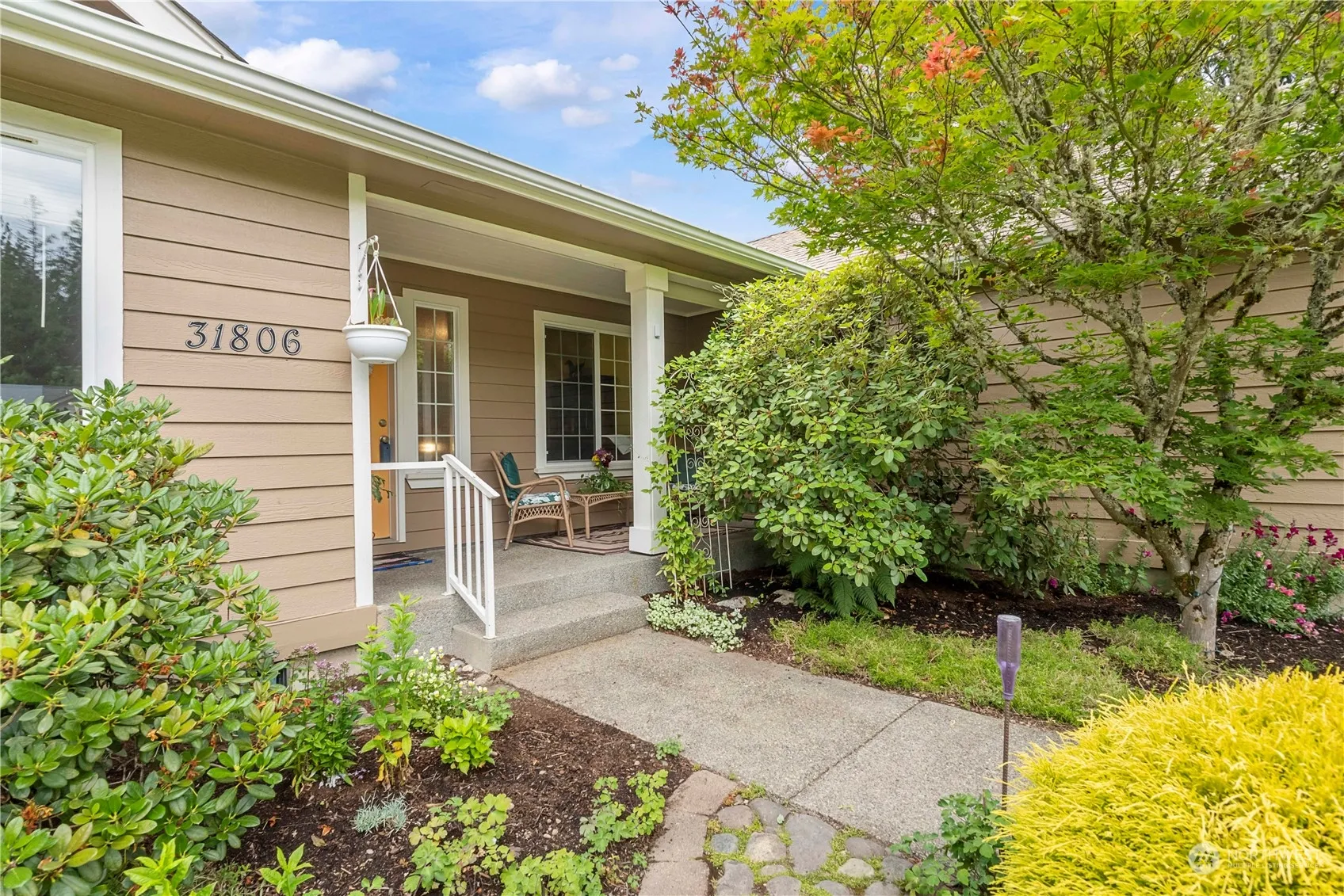 Welcome to your dream, country-living property! This custom-built 3-bed rambler (with office/den which could easily be used as a 4th bedroom), is nestled on a serene 1.25-acre lot, down a secluded dead-end street. The beautifully landscaped yard features a covered front porch, cozy fire pit, diverse/mature flower garden, a patio with accessibility ramp, and large backyard area, perfect for outdoor gatherings. Inside, enjoy vaulted ceilings, bamboo flooring, a mudroom, and a heat pump for year-round comfort. The home boasts a water filtration system with a private well and a spacious 3-car garage! Just minutes from Ft. Lewis East Gate, this well maintained property is a rare find. Don’t miss out on making it yours!