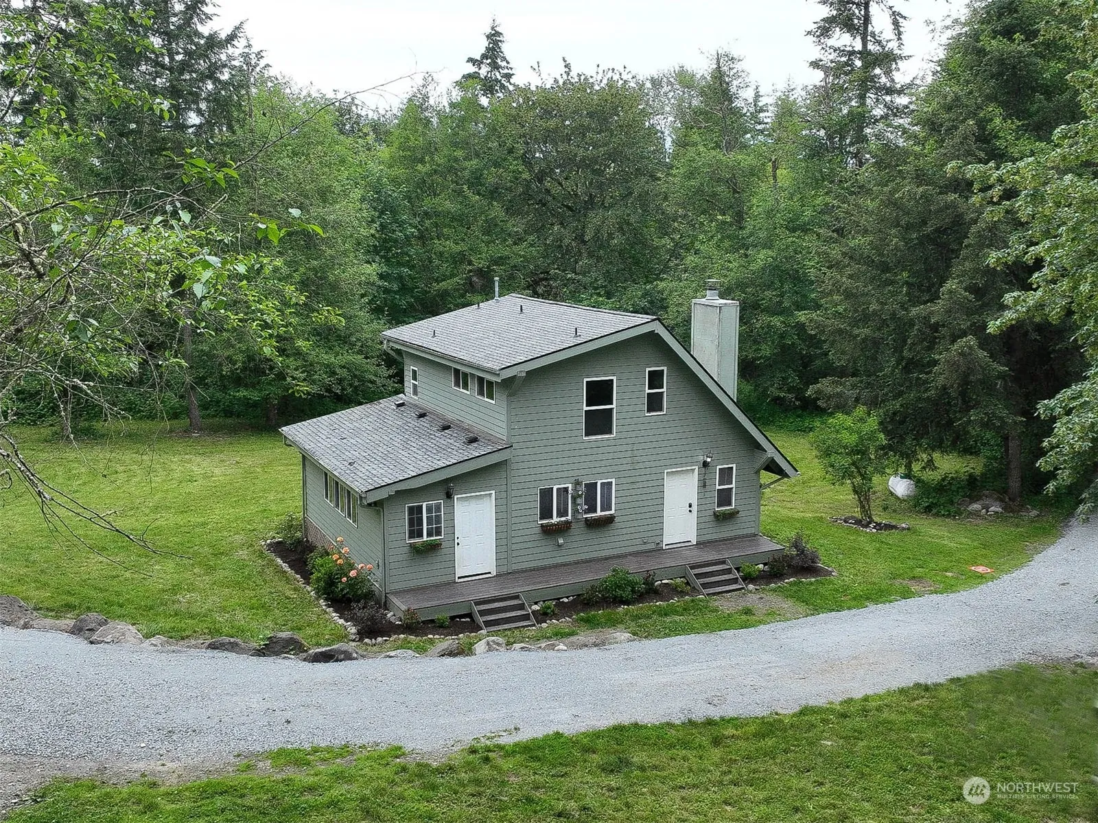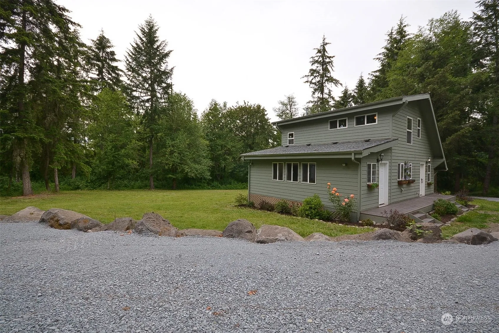 Welcome Home! This beautifully 5.450 private acreage w/Home. Features include gated entry, treed lined road,w/beautiful remodeled home. Gorgeous lg tiles thru-out main flr, w/open concept living rm, & great kitchen w/Island w/new granite counters w/tigers eye inlay, built in spice rack, walk in pantry, barn door to lg laundry rm. main level has large bedrm & full bath w/new tile, deep bath tub, new water purification system, Lovely tongue & groove cedar ceilings & a wood fireplace. Upstairs has new carpet primary rm w/FP & full bath w/jetted tub new tile shower. Freshly painted inside & out. New mini split & hot water tank & 30 year roof in 2019. Also a wine cellar. Access to Picture lake. So many extras, Close to JBLM, Tacoma.Make an appt!