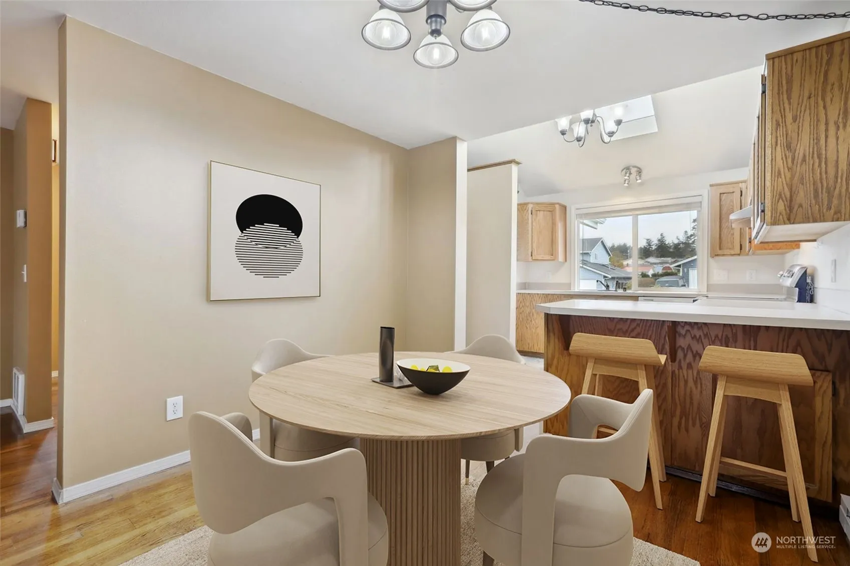 Spacious 2-level condo in Colonial Court! Main level open-concept floorplan with cozy fireplace in the living room, kitchen with breakfast bar & ample storage, full bathroom, and the primary suite. Upstairs are 2 more spacious bedrooms and a 2nd full bath. Lovely hardwood flooring, newer baseboard heaters, LED light fixtures, ceiling fans, newer skylights & more! Outside is a fully-fenced private backyard with a deck, wood for the fireplace, and beautiful mature landscaping. Attached 1-car garage, HOA dues cover exterior maintenance and front lawn care… this is low-maintenance living at it’s best! Near schools, shopping, the base, & much more. Welcome Home!