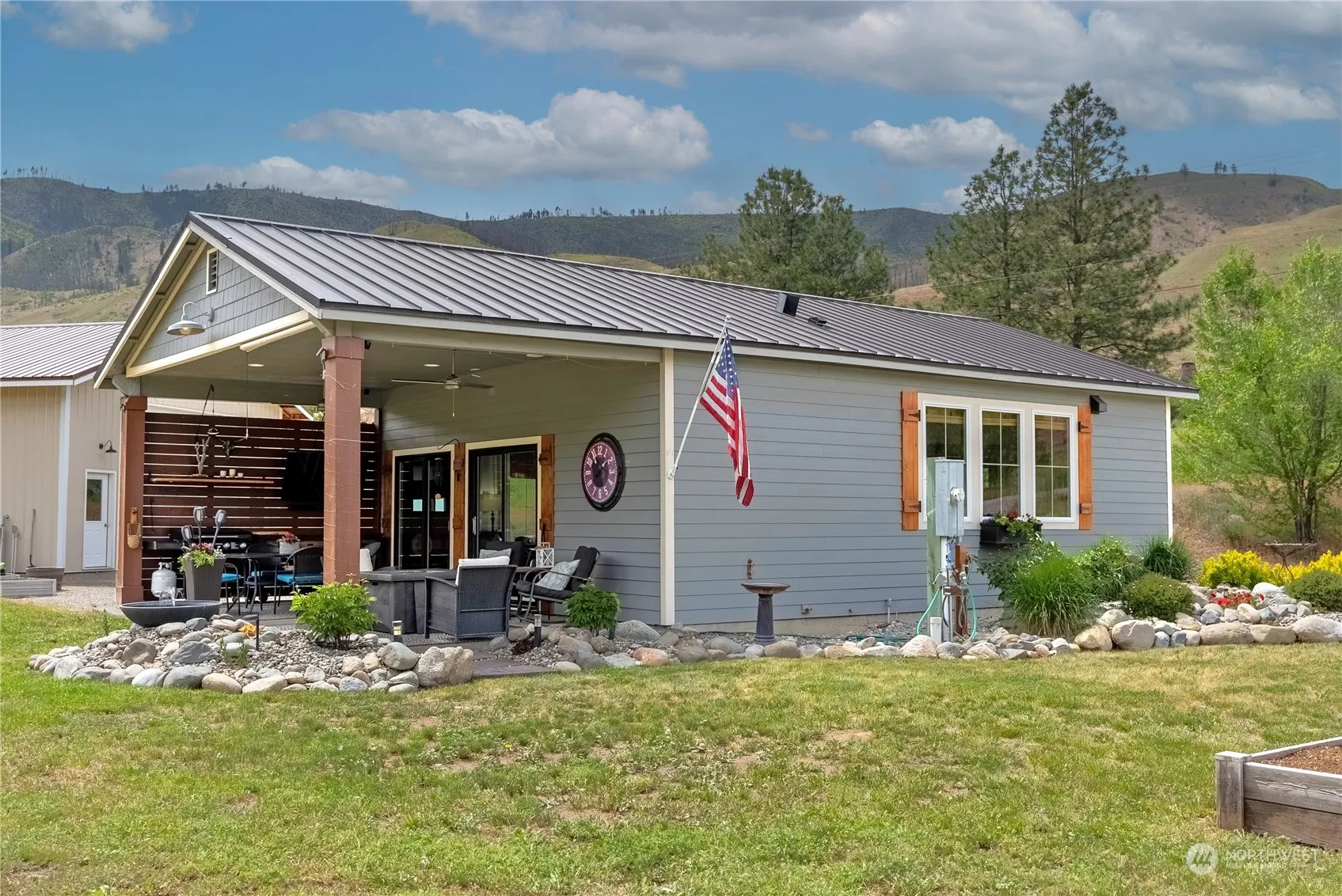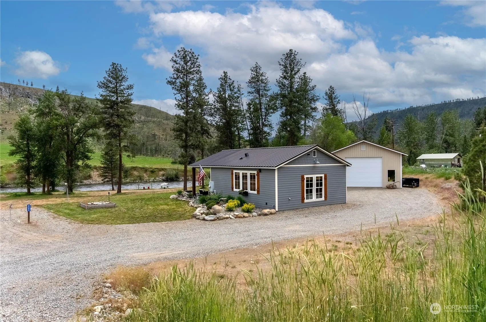 Look no further, the riverfront retreat you’ve been waiting for is finally here. Elegant and freshly finished with modern farmhouse cottage flare. Perched on 2.9 acres along the Methow River, nicely appointed 800 sq. ft. home, 1 BD, 3/4 bath with large insulated shop. Crips & sophisticated finishes; white shiplap & pine walls, barn doors, and white subway tile backsplash. Entertain & relax to your hearts content. Exit through sliding doors to a stunning covered patio complete with grilling station, TV, surround sound, table and firepit. Bring your friends and family, 2 RV hookups. Walk right to the 900 ft of sandy riverfront to play. Get ready to relish, this is it! Comes fully furnished.