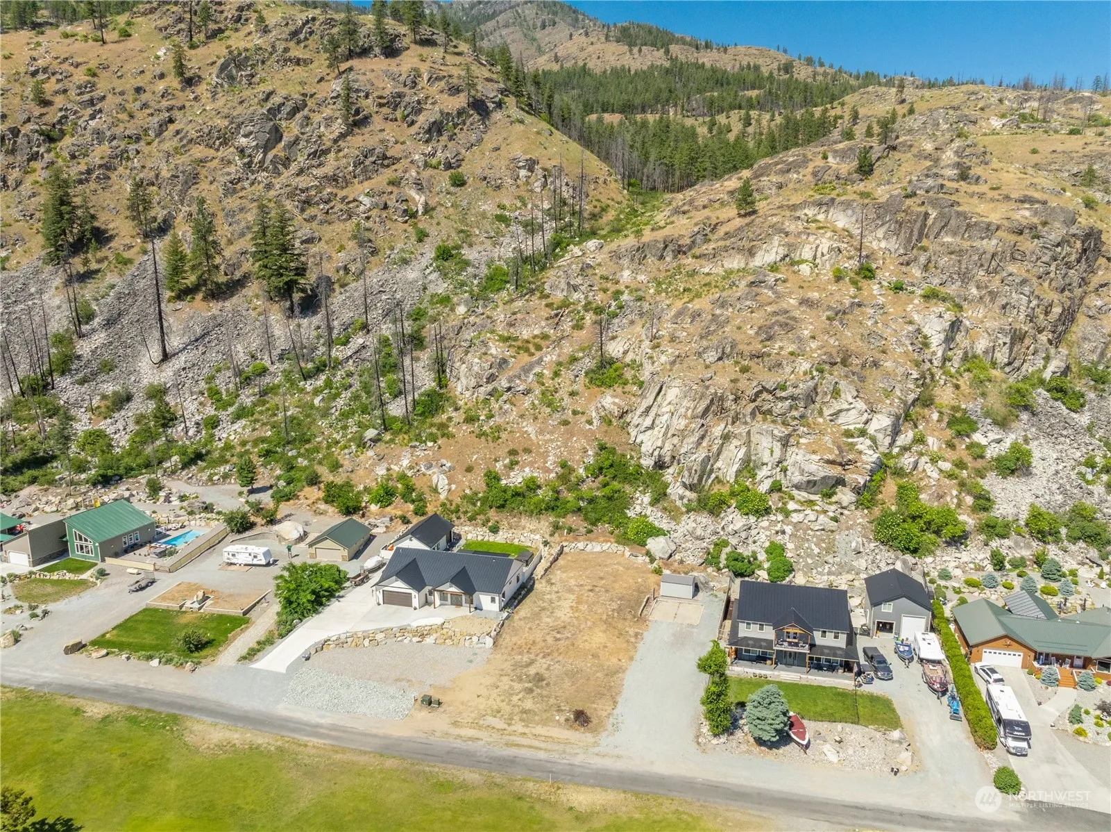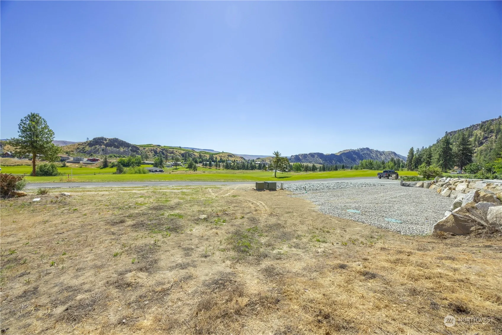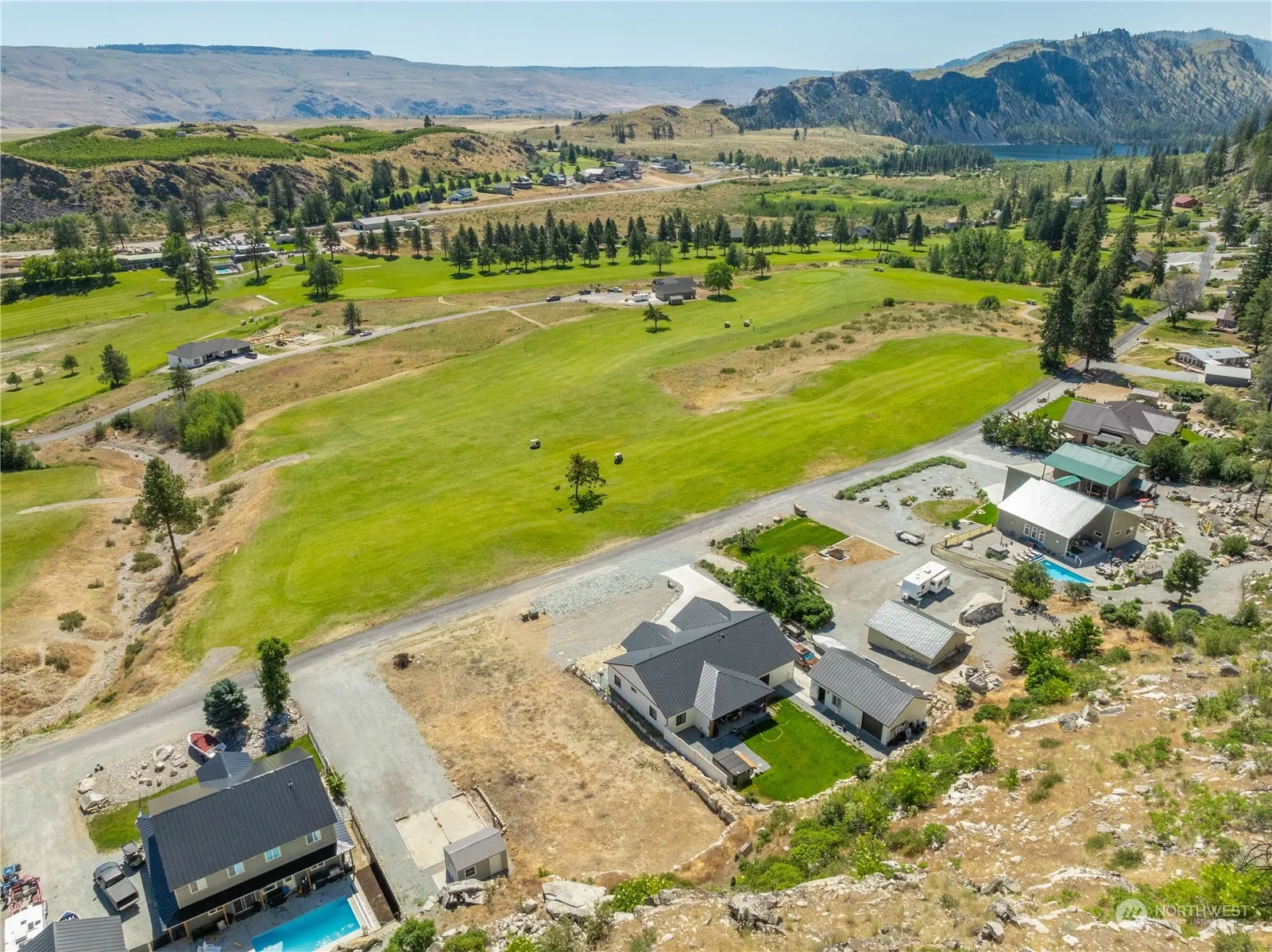 Sunshine abounds on this ready-to-build lot on the 7th green at Alta Lake Golf Course. One of the last flat lots available and just under an acre in size, this property is tucked between two gorgeous news builds and is ideal for a rambler or true 2 story home. Electric and water are already on the property. Garage pad and rock retaining wall in place. Enjoy year-round recreation including hiking, fishing, golf, skiing, water sports and more. From book clubs to potlucks, annual cart parades to weekly golf groups, see why so many call Alta their “happy place.” 20 minutes to Chelan. Shed included. One year golf membership with the purchase of this property.