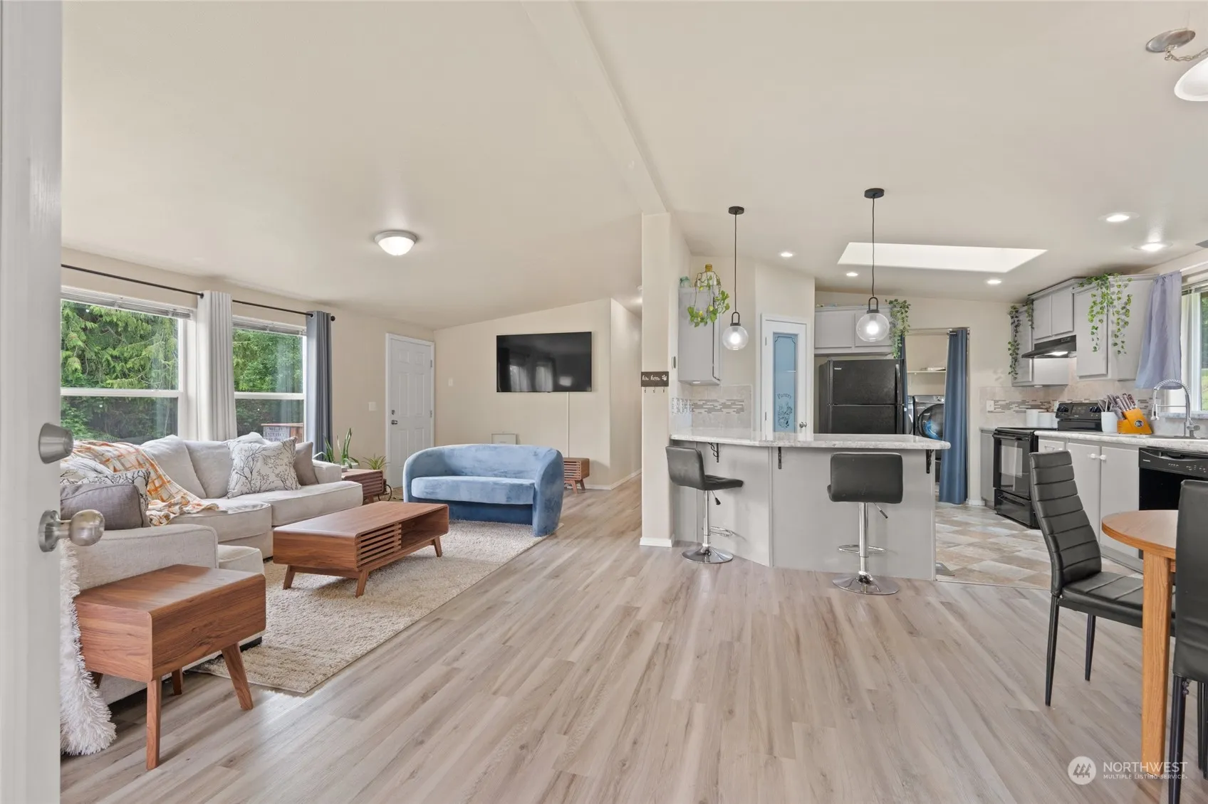 Welcome to this wonderfully laid out 3 bed, 1.75 bath home on 1/4 acre of DEEDED LAND! Located walking distance to Hermosa Beach, this home features laminate flooring throughout most of the home- no carpet! Enjoy a spacious great room with vaulted ceilings and open to the dining and kitchen with lots of cabinetry, farm sink, a walk-in corner pantry, breakfast bar and skylight for added natural lighting. Private primary suite with walk-in closet, dual sinks, walk-in shower and private commode. Outside, enjoy the sunsets over the bay from the covered deck and cozy campfires at the fire pit all summer long. Located on 80th St NW/Shoemaker.