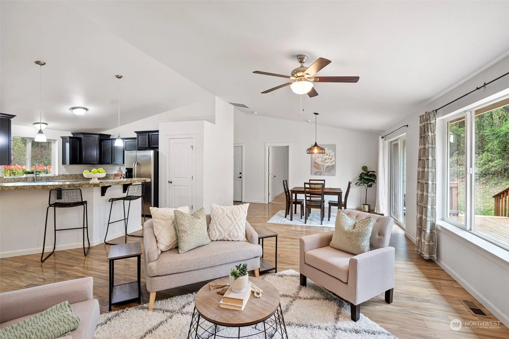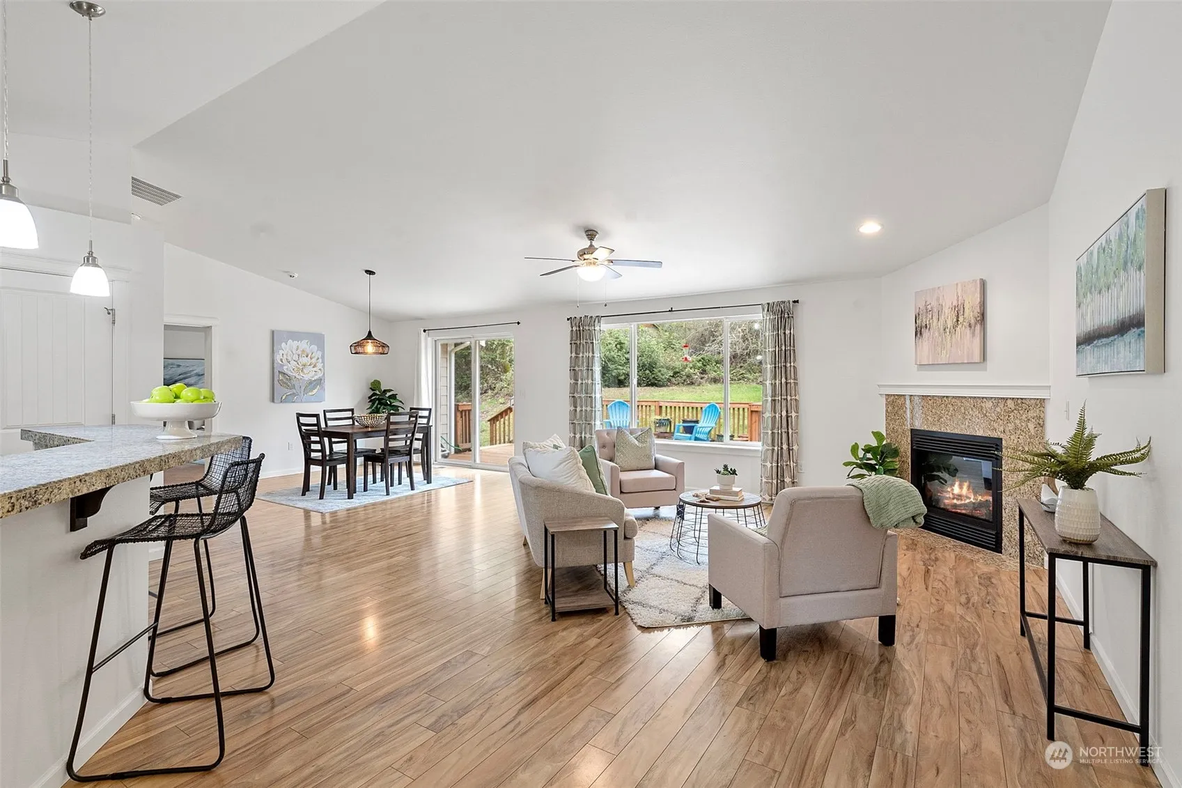 Can you say RAMBLER! Newer open concept rambler on a private fenced 1.17 acre. Tucked in at the end of a road offers space and privacy. Perfect set up with the Primary at one end of the home and the two bedrooms opposite with a bath between. Granite and stainless kitchen with the perfect sink for those large soup pots and eating bar. Walk in pantry is great for those Costco runs, plus ample laundry area. The Primary offers a walk-in closet and 5-piece bath for your enjoyment. Turn on the propane fireplace for the chilly nights or enjoy the heat pump for those hot days. The yard comes with a coop, garden space and storage. All this is located near a beach, boat launch, shopping and Parks. Bring the boat and or RV as there is space.