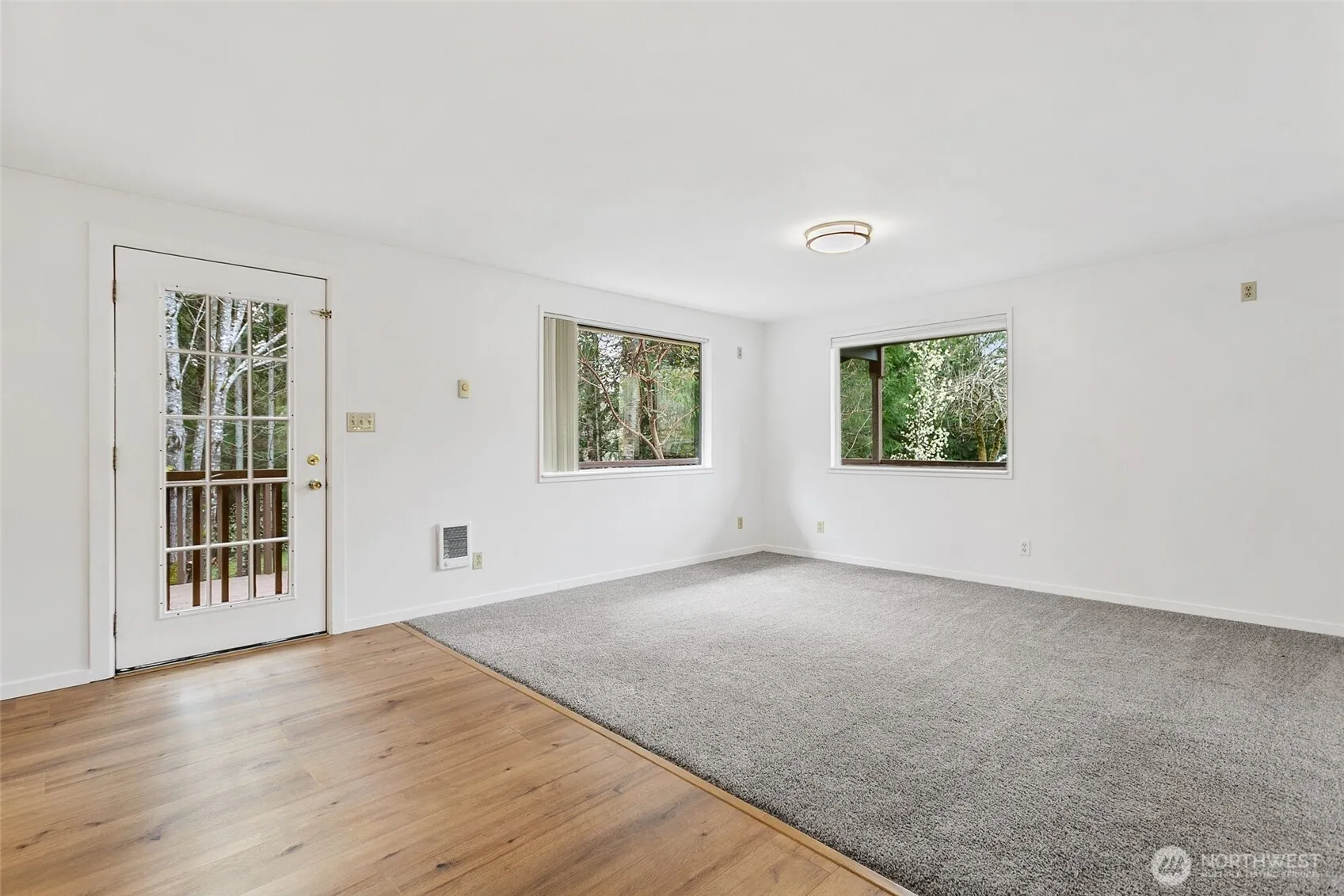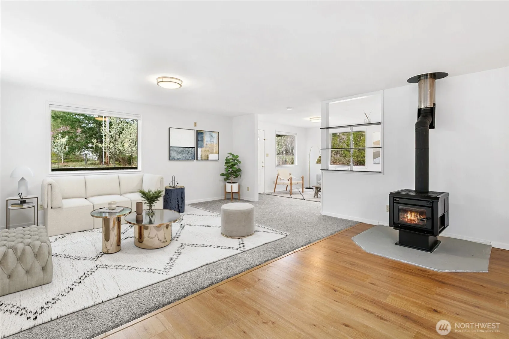 Stunning single-story home on almost 3 acres, this beautifully updated property offers the perfect blend of modern upgrades & outdoor living. Recent improvements include fresh interior & exterior paint, resurfaced wrap-around patio, new flooring & trim, new electrical panel & tankless water heater. The heart of this home is the brand-new kitchen, featuring custom cabinetry, butcher block counters & stainless steel appliances. The remodeled bathroom boasts a custom vanity, elegant lighting & mirror w/ linen cabinetry for added storage. Outside, the property offers gorgeous landscaping improvements including walking trails, beauty vegetation, gardening & flower beds.