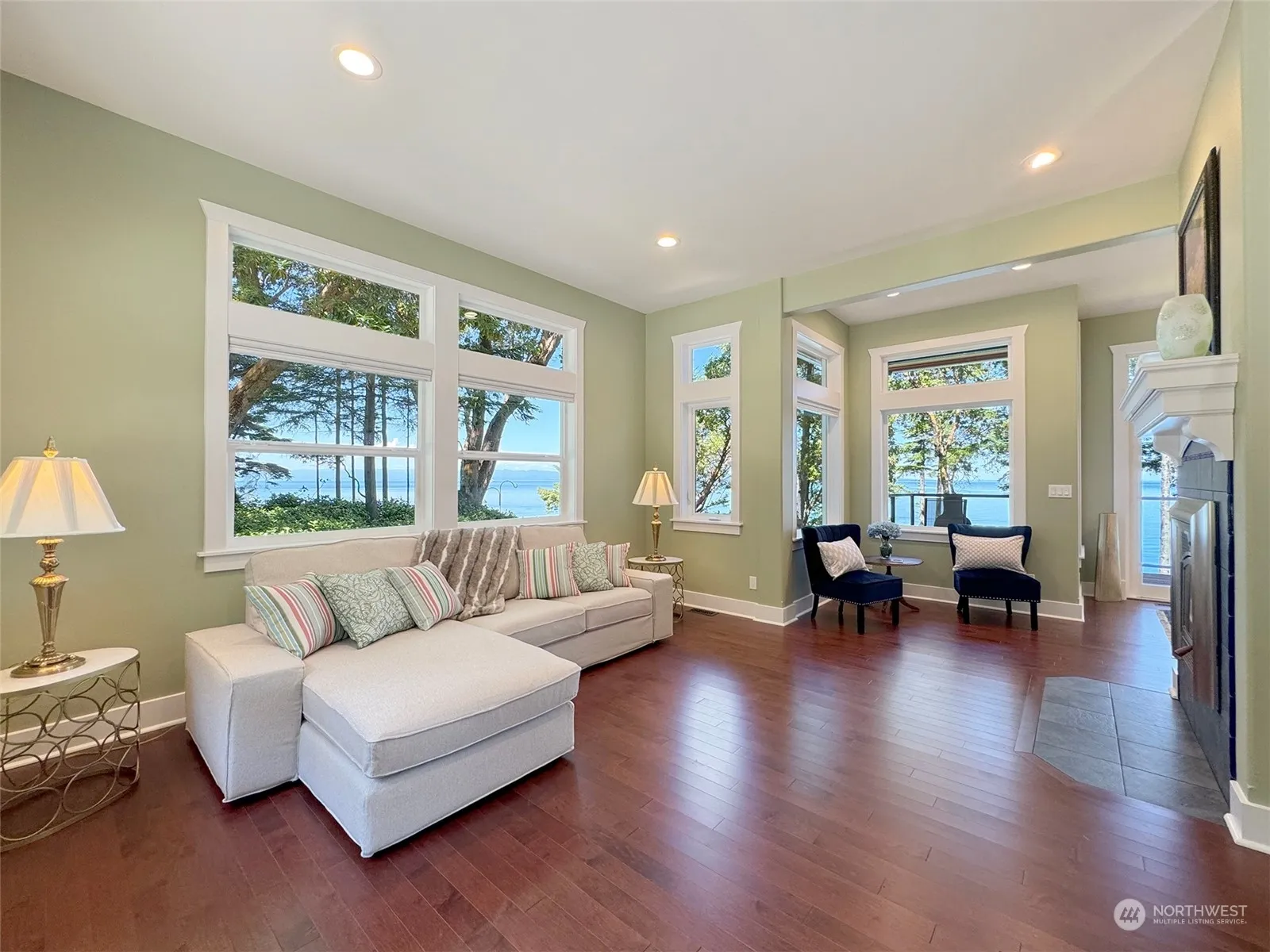 This stunning waterfront property spans 5 acres in Freshwater Bay, close to the Striped Peak trail and the public boat launch, offering prime kayaking opportunities. It boasts breathtaking views of the Strait of Juan de Fuca, Mt. Baker, and Victoria, complemented by the plentiful wildlife and birds. This stylish custom home is designed to accommodate aging in place, featuring an elevator, zero-step entry, wide hallways, and a roll-in shower. New Bosch appliances, Liebherr refrigerator, and energy efficient heat pump. Bonus cabin with kitchenette and 3/4 bathroom. Greenhouse, barn, and fenced garden area. Observe the bustling ship traffic, spot majestic eagles, and enjoy breathtaking sunsets, all to the soothing soundtrack of the surf below.