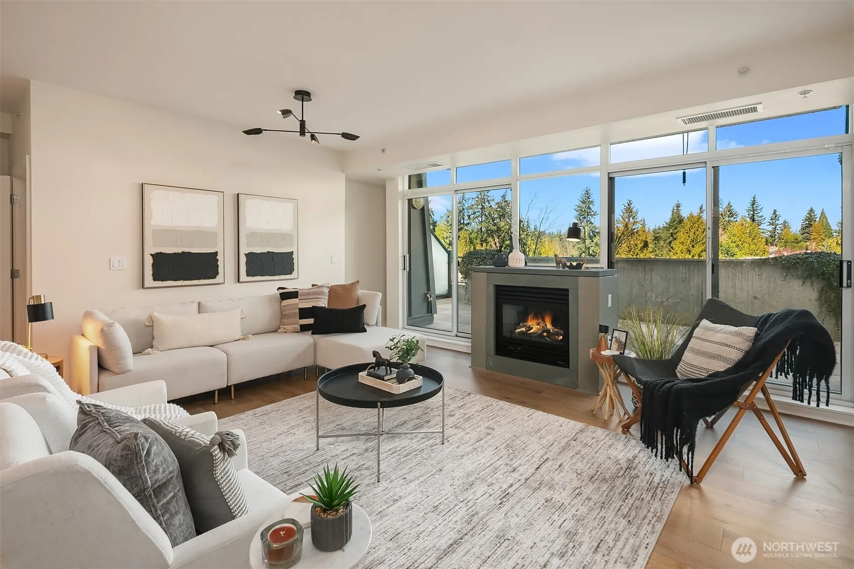 Stunning Palazzo penthouse offering exceptional light, space, and modern comfort. Floor-to-ceiling windows and a dramatic skylight fill the living spaces with abundant natural light. Thoughtfully designed Kitchen with a gas cooktop, built-in oven, granite countertops, and a walk-in pantry. Open concept living w beautiful hardwoods, gas fireplace and opens to an expansive private terrace (approx 400 sq ft) with territorial views is perfect for seamless indoor-outdoor living and entertaining. Conveniently located bathroom off living space. Both bedrooms feature brand new carpet and are situated on the upper level, each offering a private en-suite bathroom, ample closet space and its own balcony. Secure garage with two parking spaces and extra storage. Premium amenities w a full-time concierge, business center, and fitness center. No rental cap. Walking distance to shops, parks, restaurants and everything Downtown Bellevue has to offer!