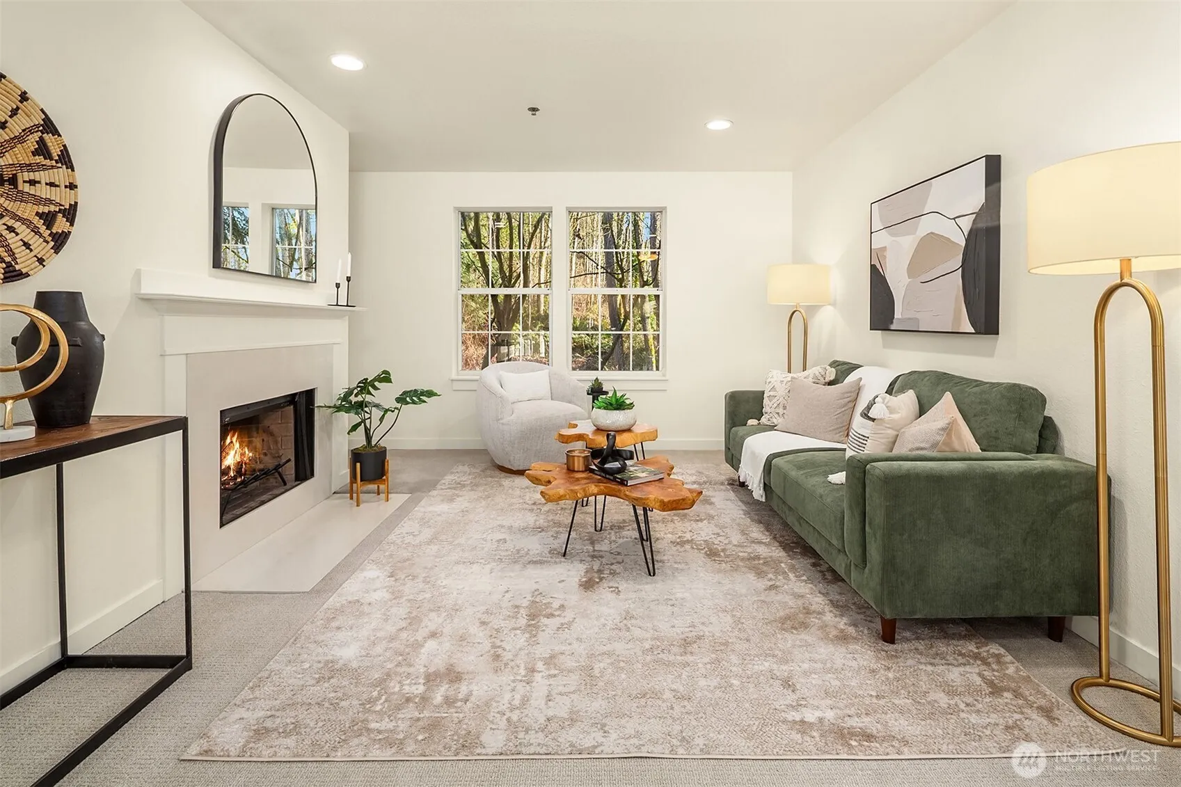 Experience exceptional space in an unbeatable location in this sought-after Bellevue residence! This thoughtfully designed 2 bed, 2 bath private end-unit checks all the boxes, offering rare stair-free access and a secure individual garage conveniently located right outside your front door. Inside, enjoy beautifully updated interiors featuring a modern kitchen with soft-close cabinets, quartz countertops, induction range, new dishwasher, and water heater, along with tastefully refreshed bathrooms. You’re welcomed inside by an open layout surrounded by sunny SW windows and a wood-burning fireplace. Enjoy the comforts of a full-size washer & dryer, newer carpets, and fresh paint—creating a warm, move-in-ready home that maximizes both comfort and space. Step through elegant French doors to your private balcony overlooking a lush Pacific Northwest greenbelt—perfect for entertaining or relaxing. The location truly sets this home apart: just minutes to downtown Bellevue, top-rated schools, Lake Washington Blvd, I-405, I-90, light rail, and metro access—making commuting and daily life effortless. Outdoor enthusiasts will love having Mercer Slough’s scenic trails and boardwalk right outside the door, plus the seasonal charm of blueberry picking nearby. All of this, plus access to a community clubhouse with gym and sauna, makes this home an outstanding value in one of Bellevue’s most desirable areas.