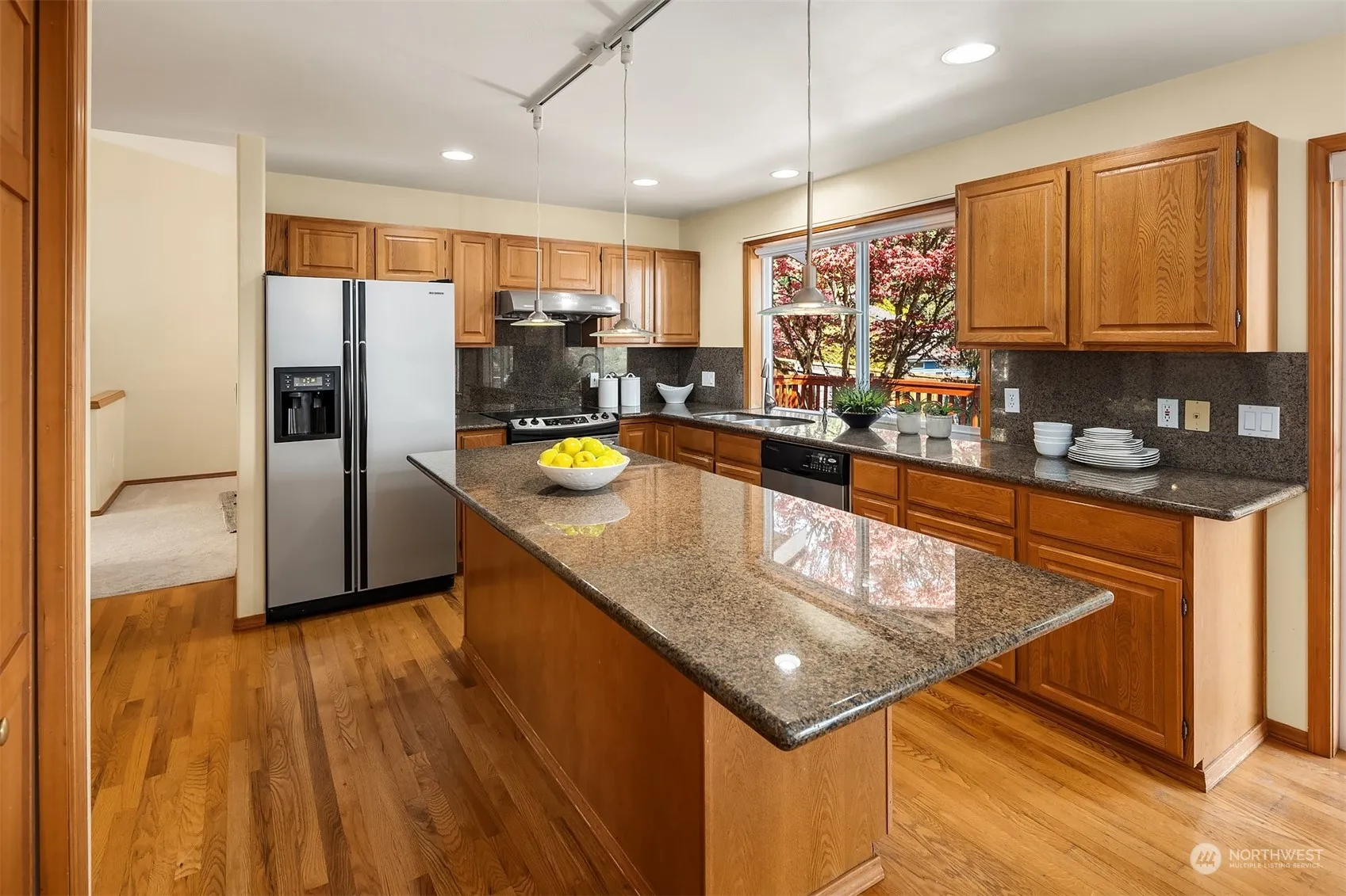 Tastefully renovated residence w/mountain views nestled in The Summit at North Creek. Vaulted ceilings in sun-filled living room & formal dining room. Chef’s kitchen showcases granite countertop, ample cabinetry & island w/seating, flowing to breakfast nook & family room w/tiled gas fireplace. Upstairs offers spacious primary suite w/remodeled 5-piece bath & walk-in closet, 3 more bedrooms & updated hallway bath. 5th bedroom/office on the main. Enjoy wrap-around multi-level deck & fully fenced backyard. 1,500+ SqFt unfinished basement w/endless potential. Oversized 3-car garage w/handicap ramp. Low HOA dues cover pool, tennis court, hot tub & gym. Power line underground. Northshore SD! Minutes to UW Bothell, highways, shops, dining & parks.