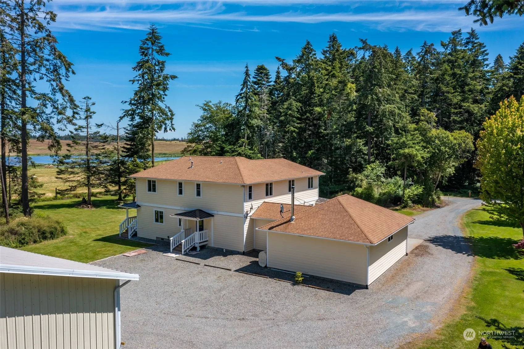 Discover your own slice of heaven at the end of a private drive. Custom country home complete with wrap around deck sits on gorgeous level 7.8 acre property w/a perfect blend of woods for privacy & openness for the sunlight & views. Inside you will find generous rooms, laminate flooring and thoughtfully designed home. Kitchen is a chefs dream w/ so much counter space & storage. Entertain w/ ease with the open floor plan & great room w/ vaulted ceilings, bucolic views, and access to covered deck. Main floor master is 20 x 20 w/ French doors to deck & walk in closet. Upstairs there are 3 more large bedrooms & family room! Approx 44 x 34 shop. Huge parking area for RV, Tractor, equipment… The possibilities are endless – Welcome Home!