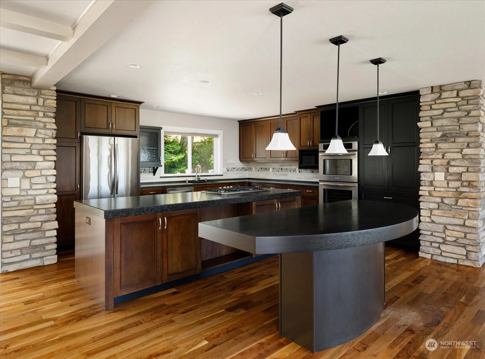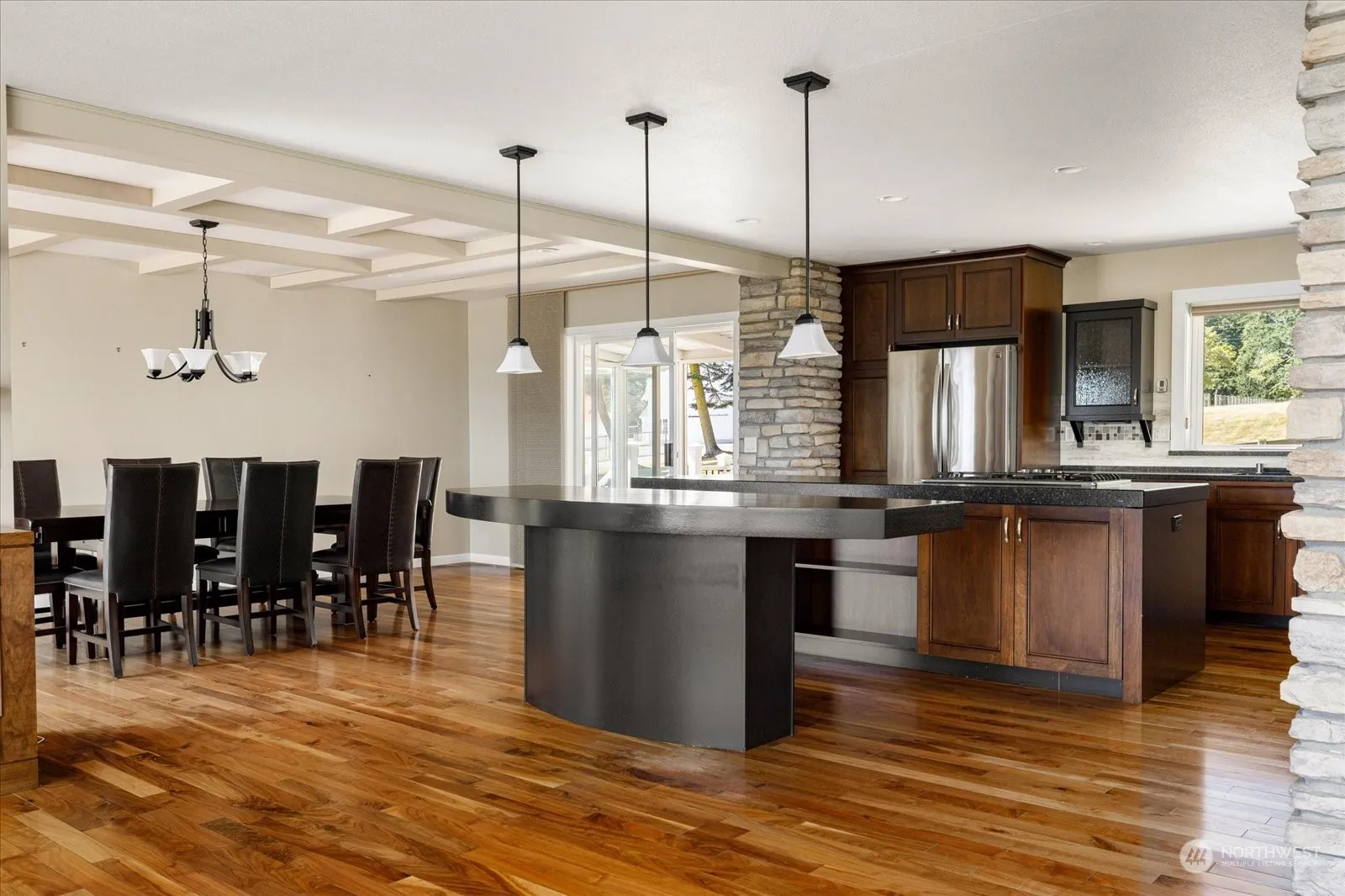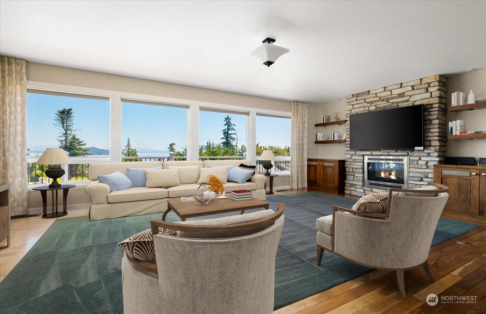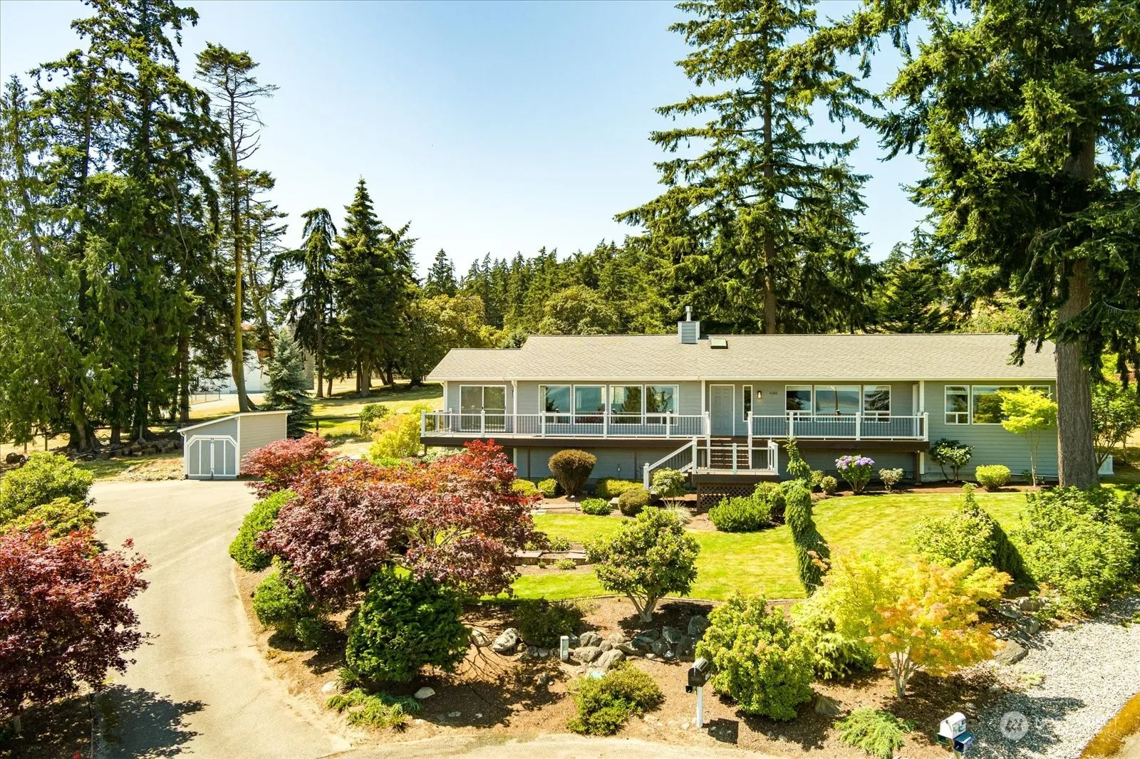 New price! Experience unparalleled elegance in this Custom built & extensively remodeled 3 bedroom home on a double lot with expansive views of the Cascade Mountains and Skagit Bay. Spacious one level living boasts an open floor plan, chef’s kitchen with huge eating Island, large dining room, den/office & primary bedroom all with fabulous views. Additional 2 guest bedrooms, guest bath, powder room, sunroom and rear deck. Downstairs has workshop, 2 car garage, enormous walk in storage area and ½ bath. Beautiful mature landscaping in front yard and large view deck for outdoor enjoyment. Quality finishes throughout, whole house generator, extra large outbuilding & pride of ownership are evident throughout this move in ready home. Come see!
