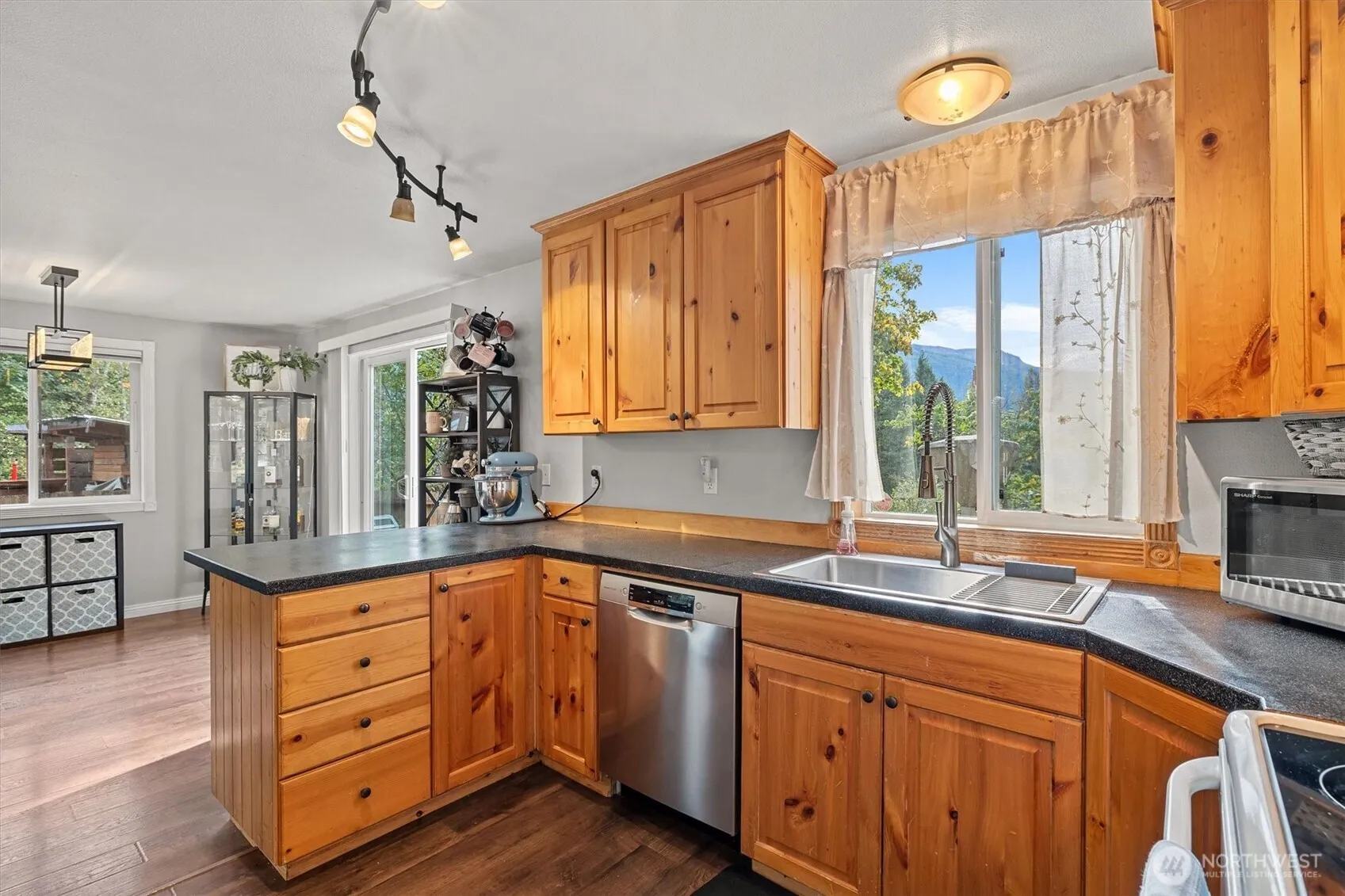 **NEW PRICE!** Welcome Home to this updated 3 bedroom/2.5 bath home with a beautiful view of the mountains and May Creek. Enjoy seeing local wildlife from your cozy living room and country kitchen. Upstairs, you’ll find a primary suite with a full bath, an additional 2 bedrooms and another full bath. You’ll appreciate the 2 car garage, RV parking area, quiet dead-end street along with 2 community parks/playground.. Enjoy year-round outdoor recreation like hiking, whitewater rafting and camping in the Summer and snowboarding or skiing in the Winter. Stevens Pass is just a 30 minute drive away.