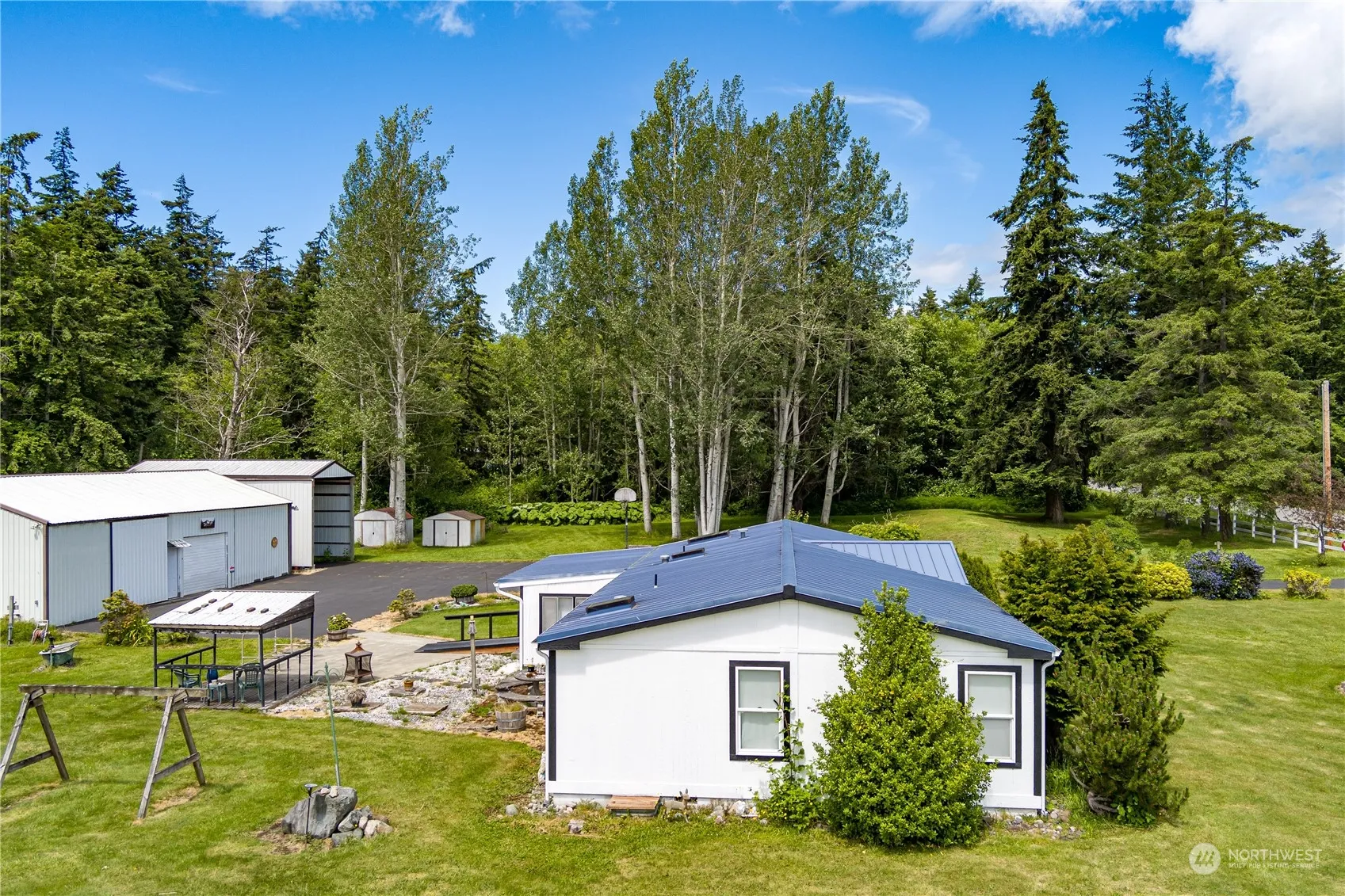Perfectly situated single level home on 2+/- gorgeous parked out acres! Located tucked away in a private neighborhood conveniently within minutes to town! Spacious living room w a pellet stove! Large kitchen w abundant cabinets & counter space. Dining room. Large bedrooms. Laminate flooring throughout. Metal roof. Generac generator will make sure you never lose power! Even a Massive 50x 32ft shop for all your hobbies & storage needs with a separate office space on the side! Carport for additional covered parking tall enough for your RV. Additional sheds. Large, beautiful yard ideal for summer BBQs & space to play! The entire property was thoughtfully laid out for privacy & functionality…this home is just perfection! You’ve found home!