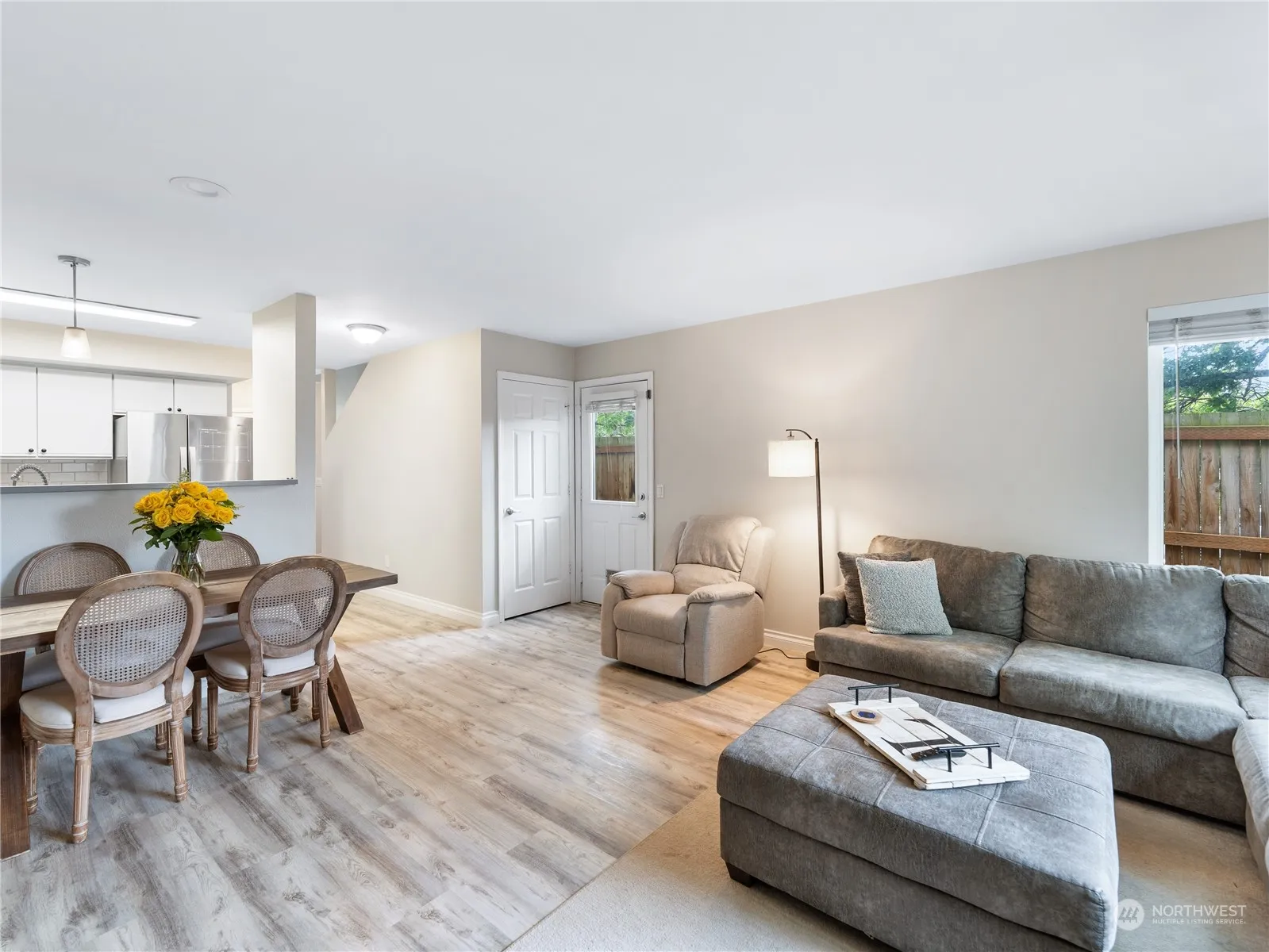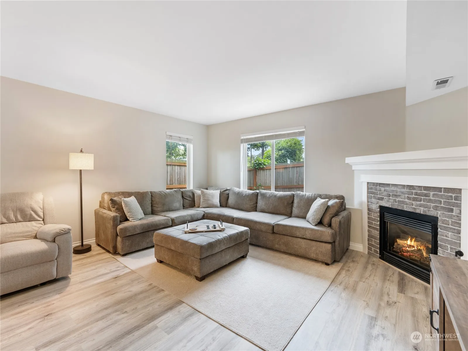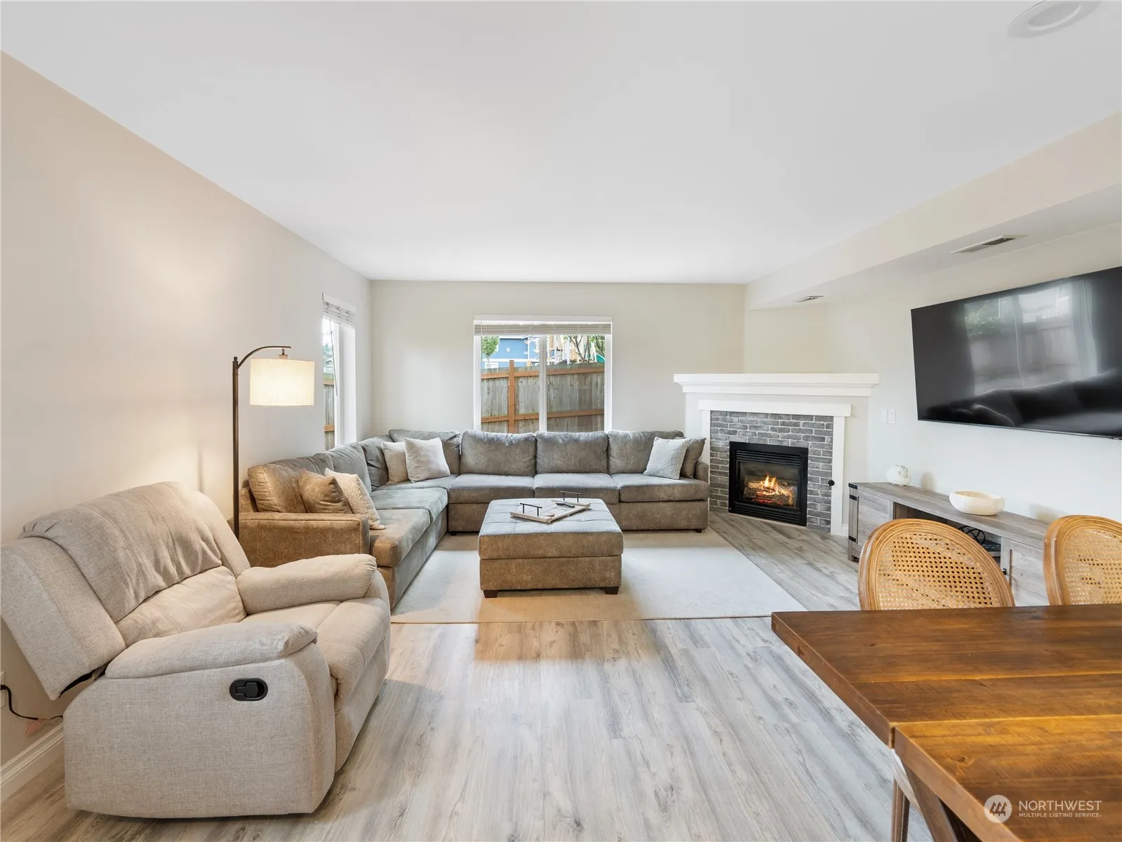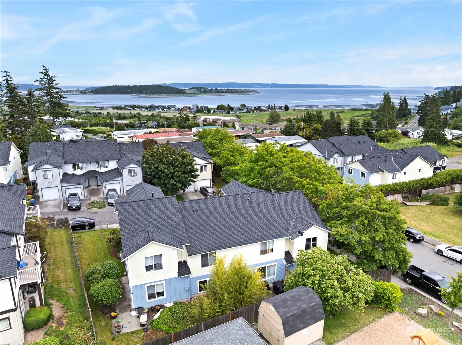 End unit 2-story condo boasts partial water views from its upper floor. Step inside to discover an inviting open concept living area, complete with luxury vinyl plank flooring and a charming corner gas fireplace, perfect for cozy evenings. The updated kitchen is a chef’s delight, featuring sleek hard surface countertops, a deep sink, subway tile backsplash, and stainless steel appliances, ensuring both style and functionality. Outside, a fenced back patio awaits, ideal for enjoying the fresh air in privacy. Close to town and NAS Whidbey, convenience meets comfort in this desirable abode. Don’t miss the opportunity to make it yours! VA assumable loan at 2.625%