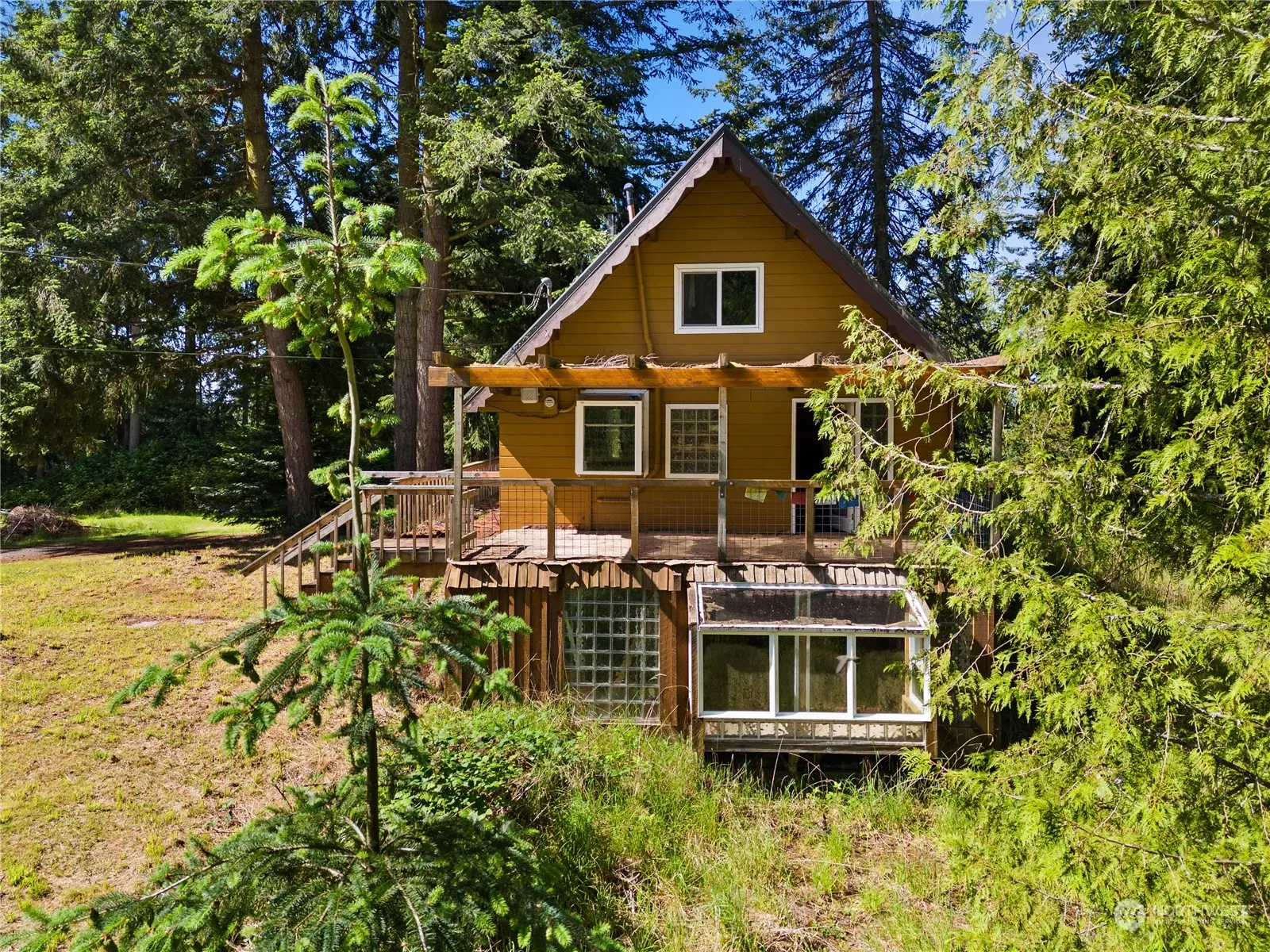Acreage on Whidbey with Lindal Cedar log cabin ready for you to remodel. Enjoy 15+ fruit trees and excellent soil quality for your garden. The southeast acre has been cleared, leveled and compacted for pouring slab on grade and has settled for 8 years. It is ideally prepped for buyers to potentially build an additional home. Roofs on garage/shop and cabin were upgraded to Standing Seam metal in 2015. Unmetered well water on property. 24′ x 30′ garage/shop with power. Enjoy the serenity and climb a few 150+ year old trees when you need a break from the rest of the world!