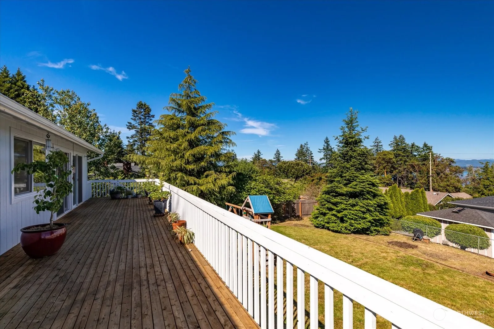 Welcome to this fantastic home in the highly sought-after Sunrise Hills neighborhood! This residence boasts captivating water views from its expansive new deck – perfect for entertaining or unwinding in serenity. Step inside to discover a spacious interior featuring 3 bedrooms, 1.75 bathrooms, as well as an extra finished room with a closet. The wide entryway invites you in with warmth and style. The open floor plan seamlessly connects the living, dining, and kitchen areas, creating an inviting atmosphere for gatherings and everyday living. Lots of windows for capturing natural light, as well as taking in the amazing views. Large corner lot offers many options. This community is wonderfully situated between Deception Pass and Oak Harbor.
