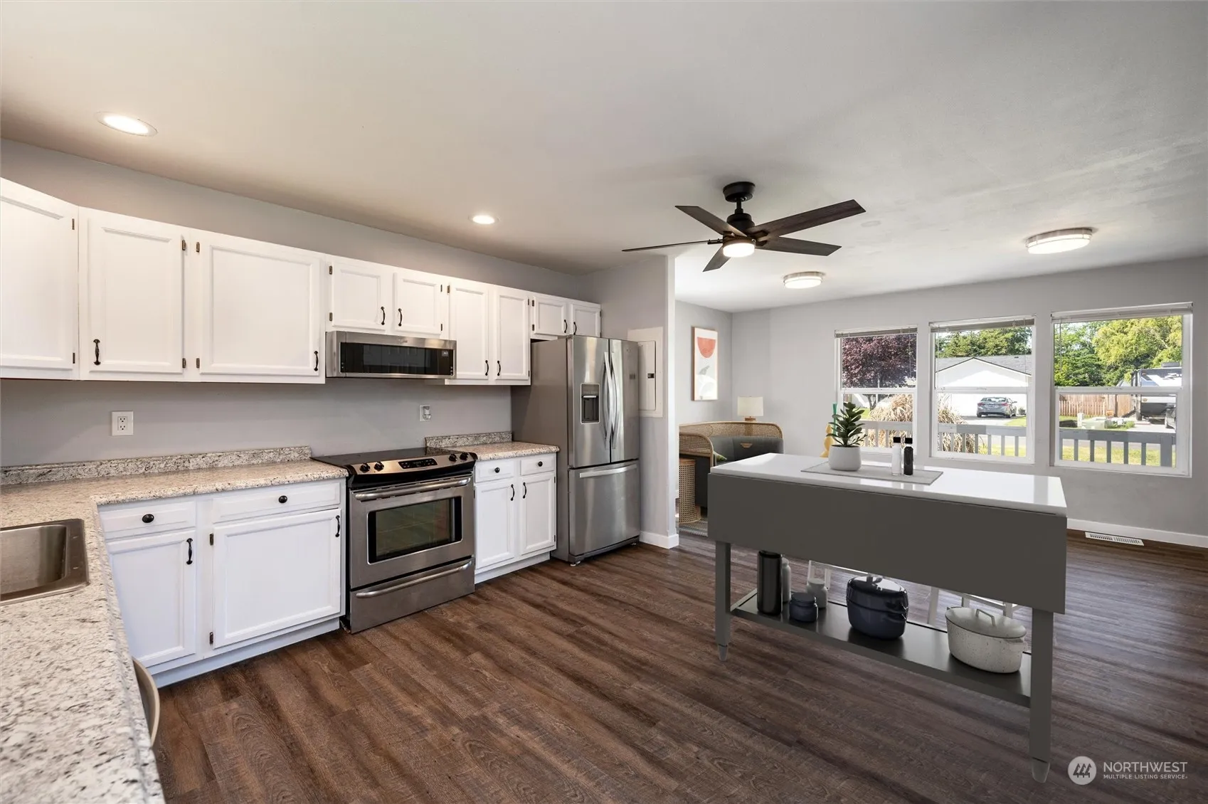 Island life without the jet noise and all the traffic! Why settle for an outdated rental or manufactured home when you can have an adorable and beautifully remodeled home in a good neighborhood with GREAT neighbors located in quiet cul de sac. This home comes on a large flat lot with waterproof flooring throughout the house, full size shower, and vanity. Large bedrooms with new paint newer stainless steel appliances and sink. Washer/dryer in unit. Within walking distance of Hastie Lake County Park which is a low bank beach area on the west side of Whidbey Island. Conveniently located 5 minutes south of Oak Harbor and 10 minutes from Coupeville.