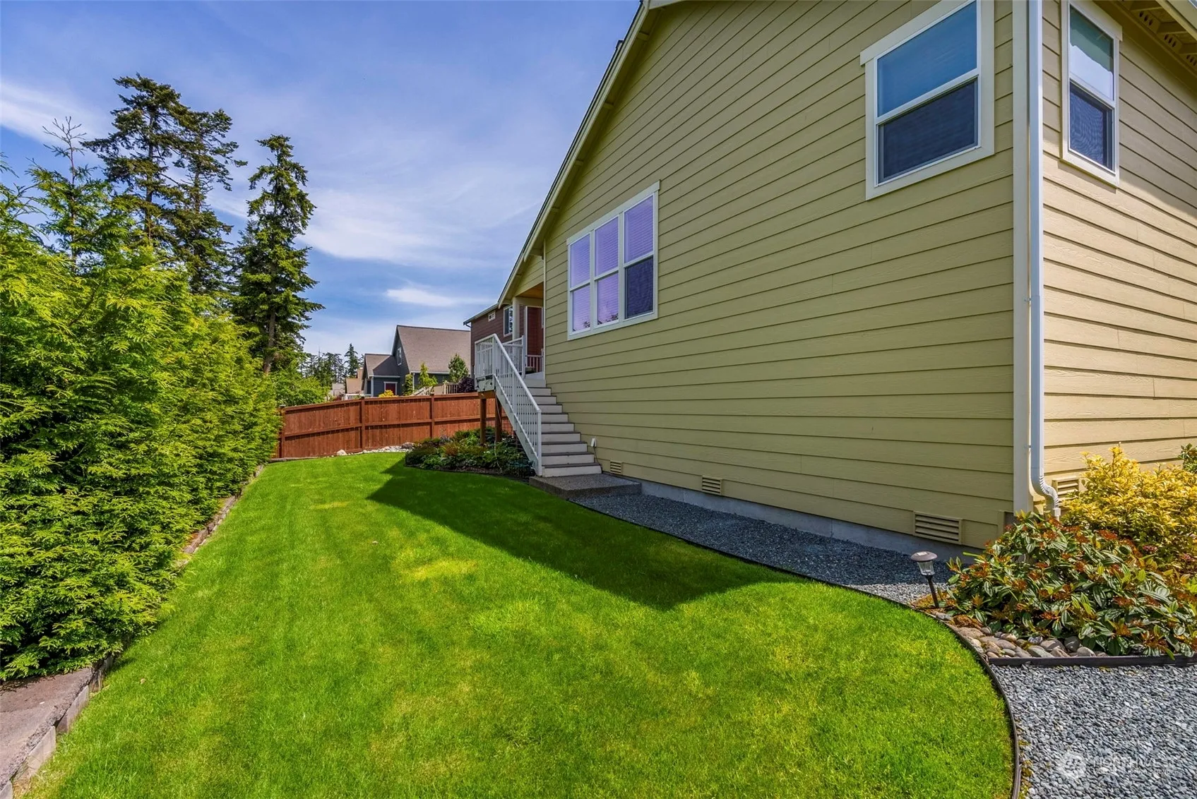 Luxury shows in this (original model home) 3 bedroom 2 bath rambler with 2522 sq ft. Vaulted ceilings – hardwood floors – gas fireplace and slab granite countertops. Formal living room that could also serve as a den, office or fourth bedroom. Large primary suite with 2 walk-in closets. Covered back patio/deck has view of the Whidbey Golf and Country Club. Cook’s kitchen has a newer high end induction stove and stainless appliances. Beautiful meticulously maintained yard with sprinkler system. Newer 95% high efficiency furnace. Three car – 800 sq ft- garage. $259/year for mowing by back fence. Home Warranty can transfer to the new buyer.