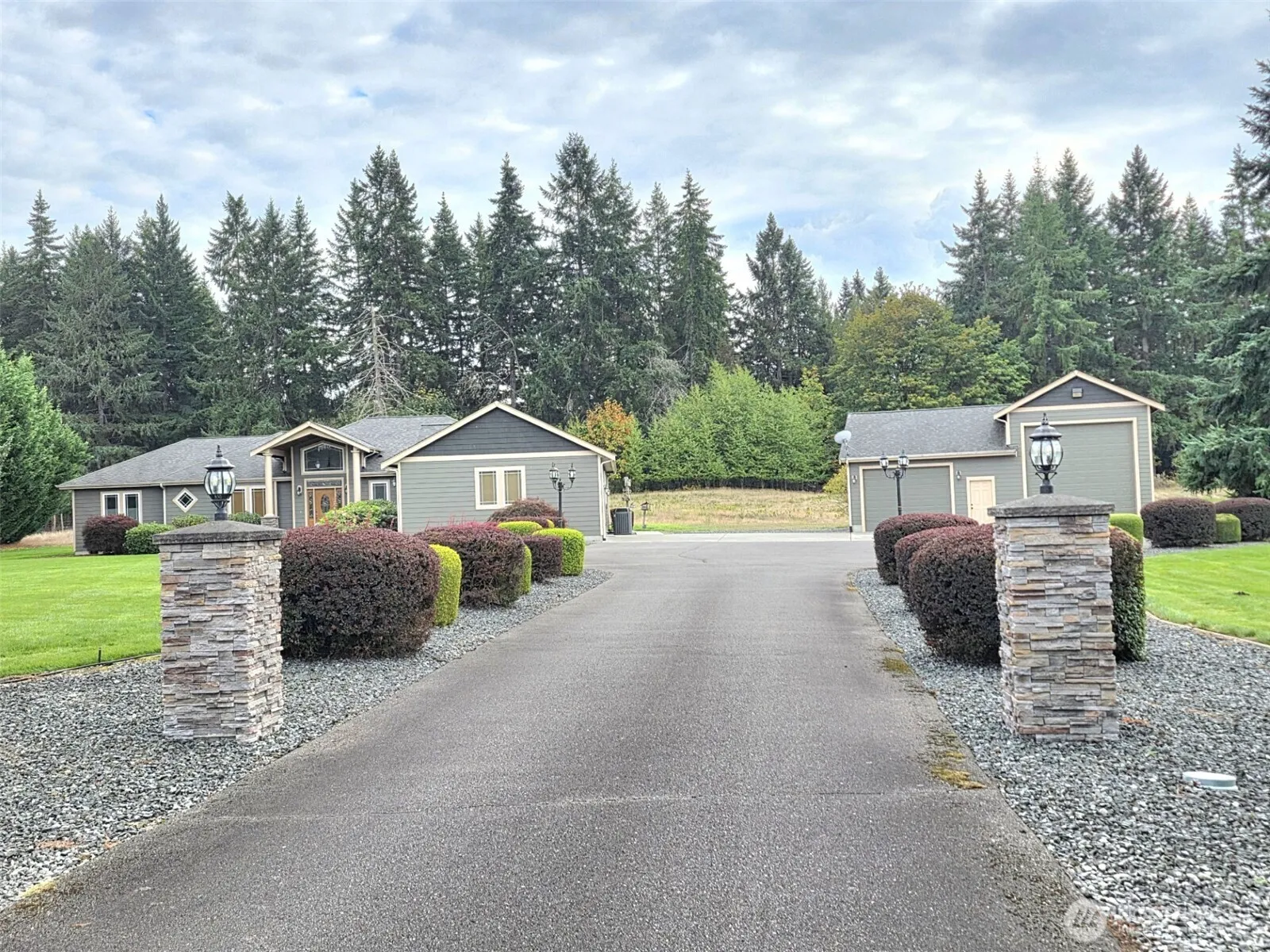 Grace and elegance abound in this beautiful custom rambler! From the gorgeous curb appeal, mature landscaping and a lovely setting, this home has it all. Gourmet kitchen with gleaming granite, butler’s pantry, large principle rooms and abundant attention to details. Cove ceilings with recessed lighting, pillars in entryway, solid wood doors and built in vac. Bedrooms on opposite sides of house. Primary bdrm has wonderful ensuite and huge walk in closet. Other bedrooms have jack and jill bathroom. Den with double french doors. Large back covered back patio and a level, dry 5 acres. Front and back sprinklers create lush lawns! Fully finished detached shop with RV Bay, storage shed and extensive concrete. Picture perfect!