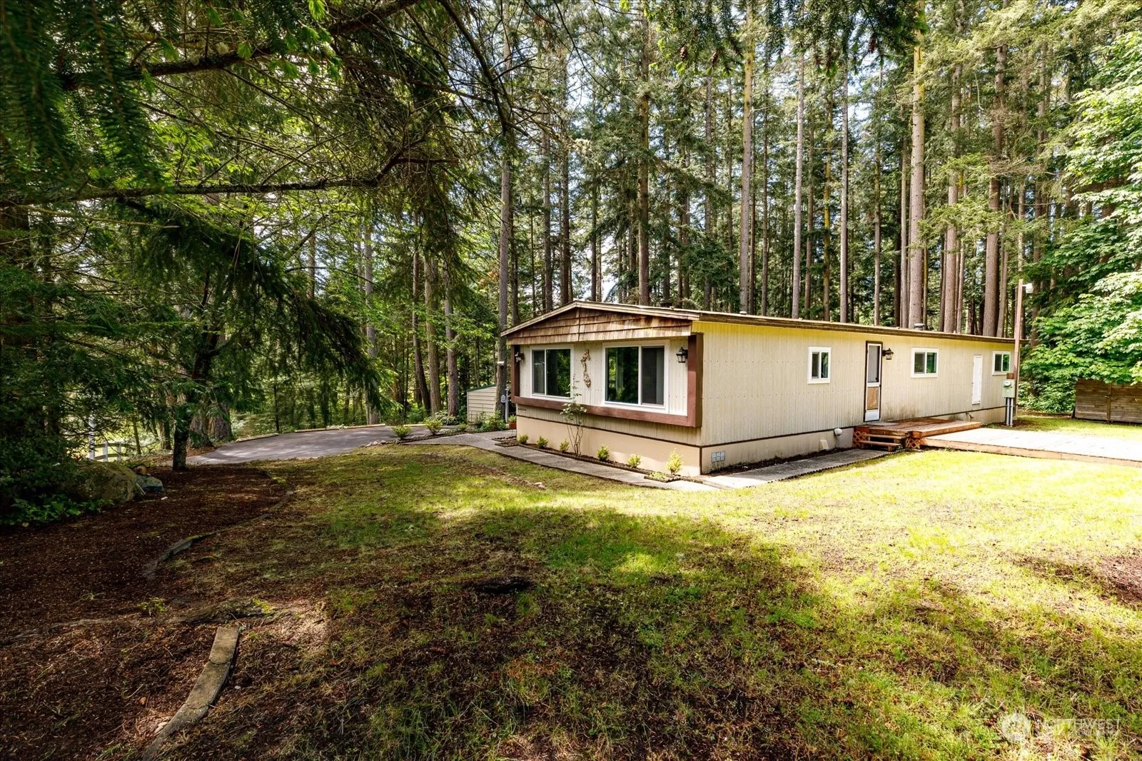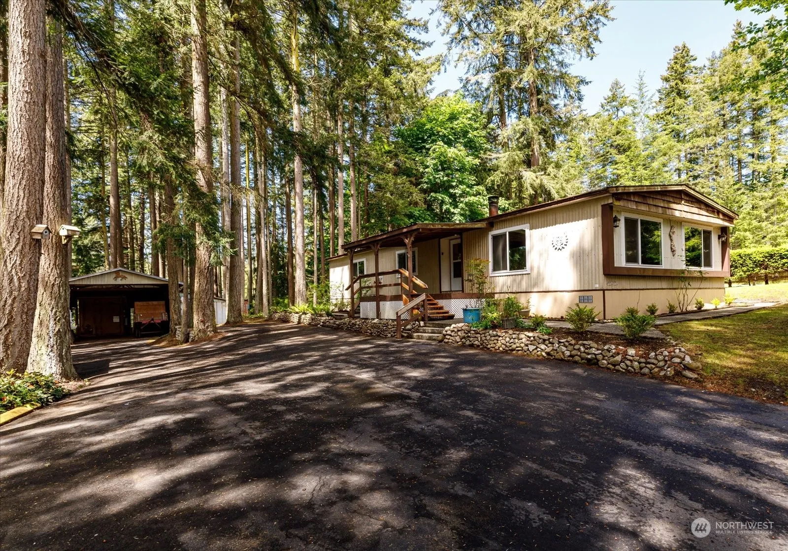 Searching for a private location on North Whidbey Island with acreage? With nearly 4 acres encompassing two lots, this property could make your Whidbey dream come true! The spacious manufactured home has been kept in great condition over the years and has 3 bedrooms plus a bonus room, and 1.75 baths including an ensuite primary bath. Move right in or remove the home and replace it with a new one or put a stick-built home in it’s place. The home lot is wooded and includes TEN (yes 10!) outbuildings for various uses including vehicle and RV/boat parking. Sale includes 2nd lot which is a sunny grassy field with a pond. So many possibilities in this North Whidbey location!