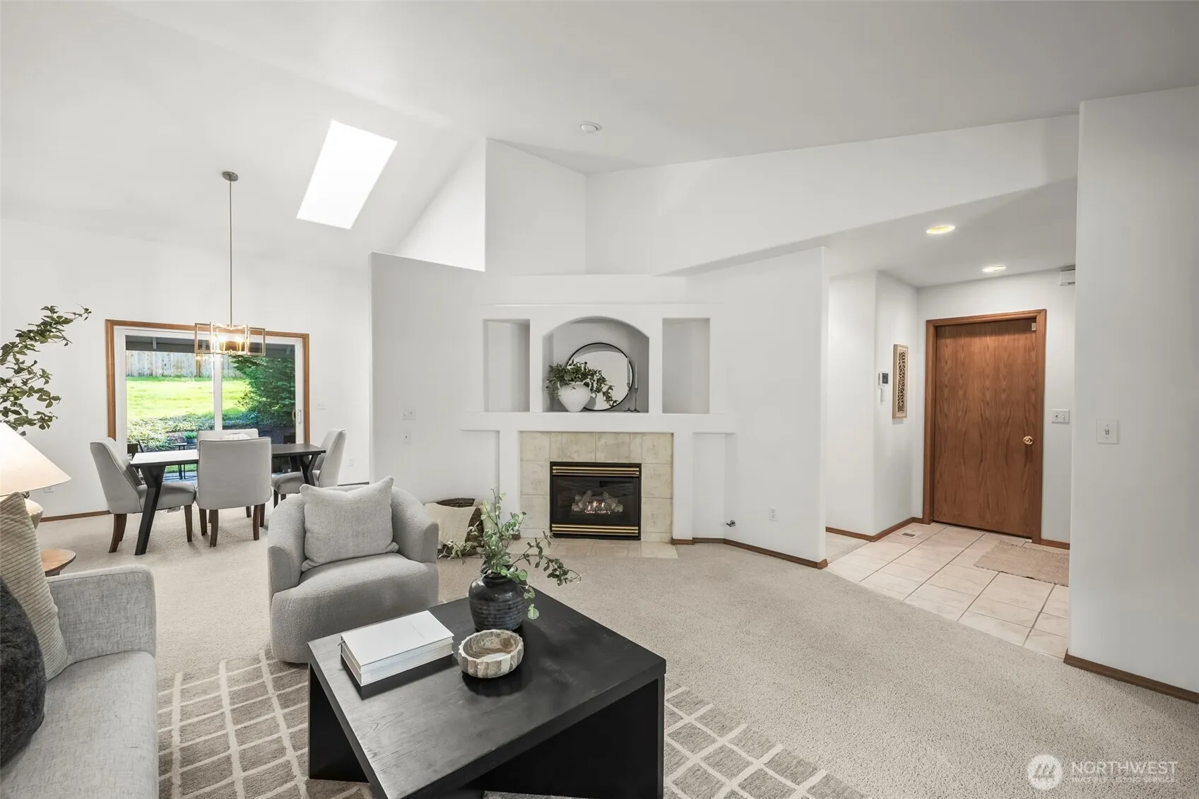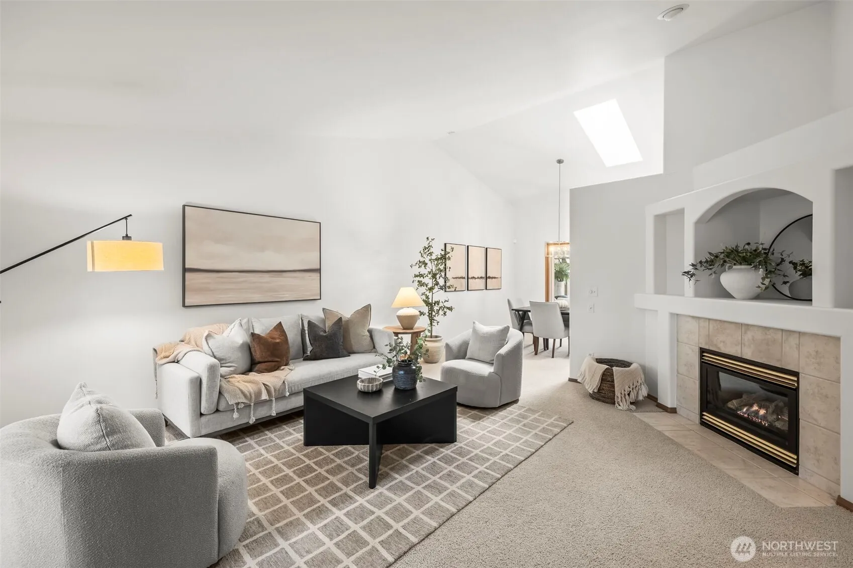 Experience the ultimate combination of privacy and convenience in this meticulously maintained, single-level University Place sanctuary. This light-filled, freshly-painted home features vaulted ceilings and new skylights that capture the Pacific Northwest glow during all four seasons. The functional floor plan includes an updated kitchen with quartz counters and a breakfast bar, flowing into sun-drenched living spaces. Relax in a primary suite with a walk-in closet and private ensuite bathroom. Use the versatile second bedroom as a home office or an inviting guest room, which also has a walk-in closet. Your private backyard is a gardener’s dream, bordering a lush greenbelt for seclusion. Enjoy two patios – one covered for year-round entertaining and an open terrace for warm mornings or sunny afternoons. Perfectly located near top shops and dining. Low-maintenance comfort meets park-like tranquility.