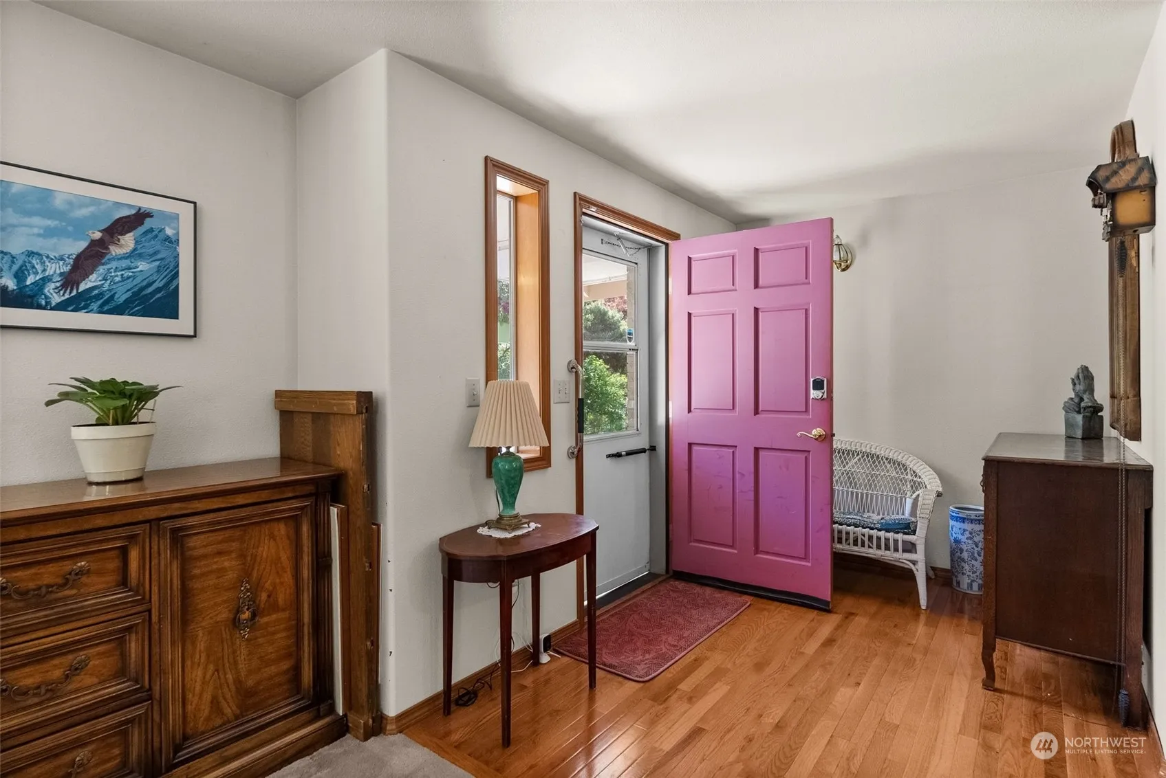 Single level living situated in an excellent & convenient location, this home combines comfort & practicality making it a perfect choice! A covered & welcoming front entrance invites you to enter this spacious open floor plan that’s comfortable & easy to live in. Ample entertaining spaces, including room for a baby grand piano, for gatherings in the living & dining rm. The warm embrace of the vaulted ceilings in the light filled family/great rm w/rm for everyone! Home features a lg primary bedrm w/ensuite bath, soaking tub & separate shower. Two additional bedrms & full bath + laundry rm & dbl car garage w/pull down stairs to overhead storage. Generous fenced yard w/patios front & back. Lots of flowers & room to plant your own gardens!
