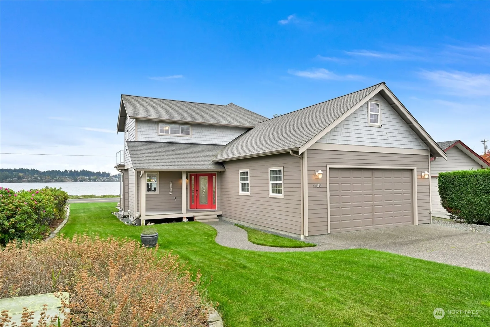 Experience the magic & beauty of The Shores At Penn Cove! Just steps from 525 feet of no-bank community waterfront, this custom-built & beautifully-maintained home is sure to impress you. The open-concept main floor boasts a wall of windows to take in the water & mountain views, spacious kitchen with plenty of storage, sunny dining area, living room with stacked stone fireplace, & the primary suite with French doors & 3/4 bath. Head upstairs to 2 more good-sized bedrooms with breathtaking views, a full bath, loft area, expansive bonus room, & deck overlooking your Penn Cove paradise. Lovely laminate hardwoods, central AC, attached 2-car garage, spacious backyard with patio & firepit area, perfect landscaping & coastal views. Welcome Home!