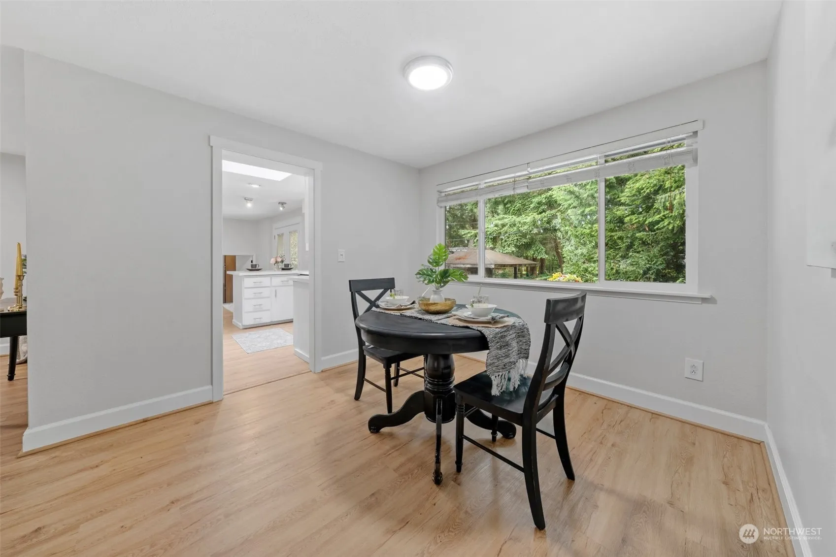 Discover this charming rambler, nestled in a serene, forested setting in University Place. The welcoming entryway, illuminated by skylights, leads into the living and dining rooms, each featuring cozy fireplaces. The bright kitchen, equipped with new countertops and appliances, provides an ideal space for entertaining. French doors open to a manicured yard and patio area, perfect for outdoor relaxation. The primary bedroom includes an attached bath for added convenience. This home also features gas heating, a large laundry room, and a 2 car garage. The community amenities include a pool, gathering spaces, and trails. Located in a fantastic neighborhood, this home is just a short stroll to Chambers Bay Golf and Park. Welcome Home!