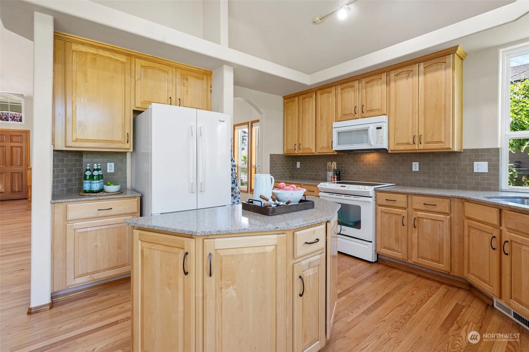 This well loved home communicates excellent care-these are the homeowners we all dream of following! Refinished floors, updated kitchen, fresh paint, and maintained systems all combine with a wonderful layout. Tall ceilings and atrium style windows light up the main level, smart spaces allow for quiet and entertaining. A Family Room that can be closed off to the kitchen has a nearby bedroom/bath, which could be used for MIL type living. The upper level has quiet spaces-3 bedrooms which includes a spacious primary suite and a bonus room that could have many purposes. Don’t miss the lovely gardens in the back-6 types of fruit trees, raspberry bushes and a generous sized patio to sit and enjoy a bowl of fruit salad!