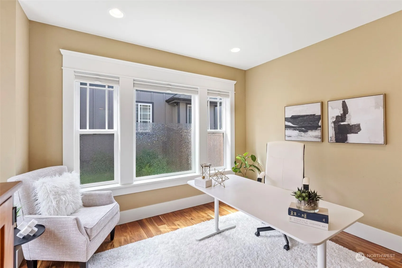 Stunning Northwest contemporary just steps to Charles Wright School & minutes to Historic Steilacoom.Enjoy a gourmet kitchen with quartz countertops and large walk-in pantry with counterspace for prep and serving; formal dining room & huge great room, beautiful Acacia hardwood flooring throughout main floor. You will love the 9-foot ceilings, private office on the main floor, & two-sided fireplace from the great room through the covered back patio for cozy entertaining. Hard to find 5 bedroom and all the space you could possibly need, newer carpet, fully fenced yard, 3 car garage, sprinkler system, AC round out the list of bonuses! Located in the desirable University Place school District & a just a 1/2 mile to Chambers Bay golf & trails.