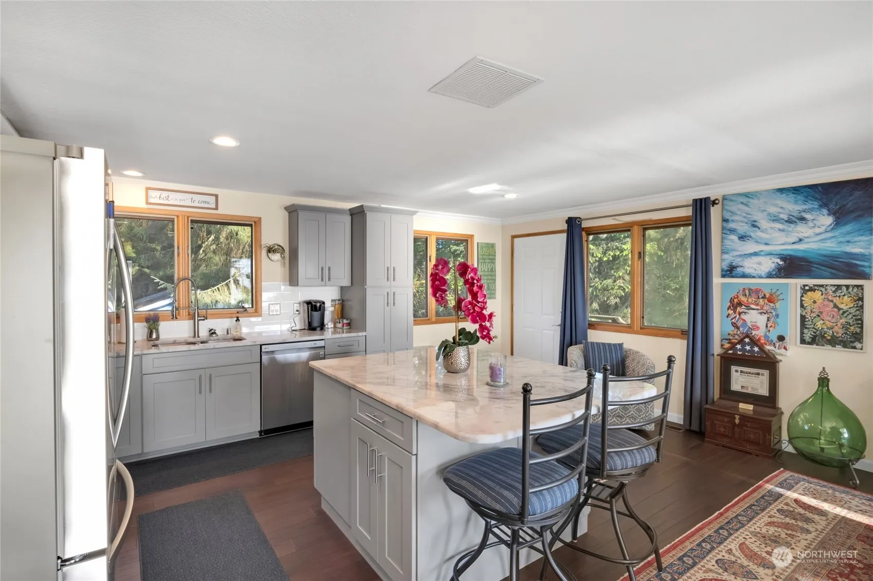 Experience coastal living at its finest in this exquisite West Beach Waterfront Home. Renovated in 2018, this haven offers unparalleled views of the Straits, Olympic Mtns., San Juans & stunning sunsets. Revel in the sophistication of new wood flooring, bathrooms, & kitchen boasting meticulous attention to detail. Luxuriate in the primary bath’s tiled walk-in shower. Watch the whales migrate through the waters of the Puget Sound from your private back deck! Nestled on a secluded driveway atop a high bank lot, this retreat includes a detached garage ripe for transformation. Embrace the joys of one-level living & the boundless possibilities this coastal sanctuary affords. Welcome to your Whidbey Island paradise!