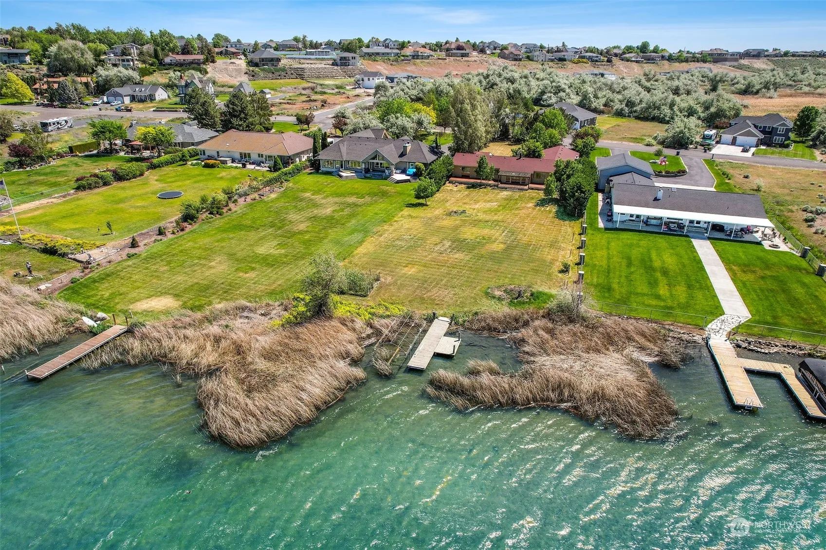Situated in the upscale Pelican Point/Dune Lakes community, this property represents one of the finest waterfront lots available on Moses Lake. The existing waterfront dock beckons. This Large Estate lot gives a unique opportunity to upgrade with potential unlimited.