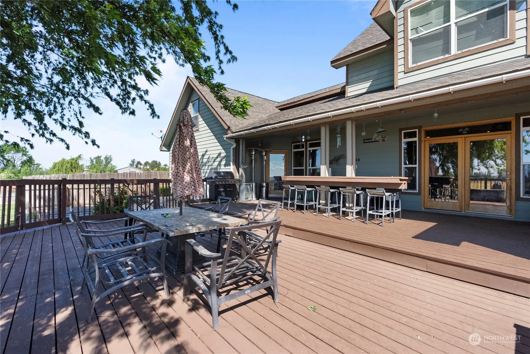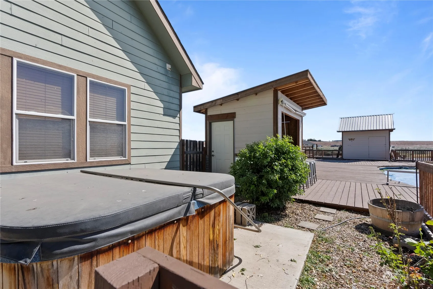 This stunning 5-bedroom, 4.5-bathroom residence is nestled on a sprawling 5+ acre lot. Five generously sized bedrooms provide ample space for guests. A harmonious mix of hardwood flooring, ceramic tile, and wall-to-wall carpeting throughout the home. Kitchen features a large island, granite countertops, and plenty of cabinet space, wood fireplace in living room. Exterior features: enormous deck, spacious above-ground pool & hot tub, two-car garage, additional storage shed provide plenty of space for vehicles and outdoor equipment. Expansive yard is perfect for outdoor activities, gardening and adorned with beautiful mature trees, offering shade!