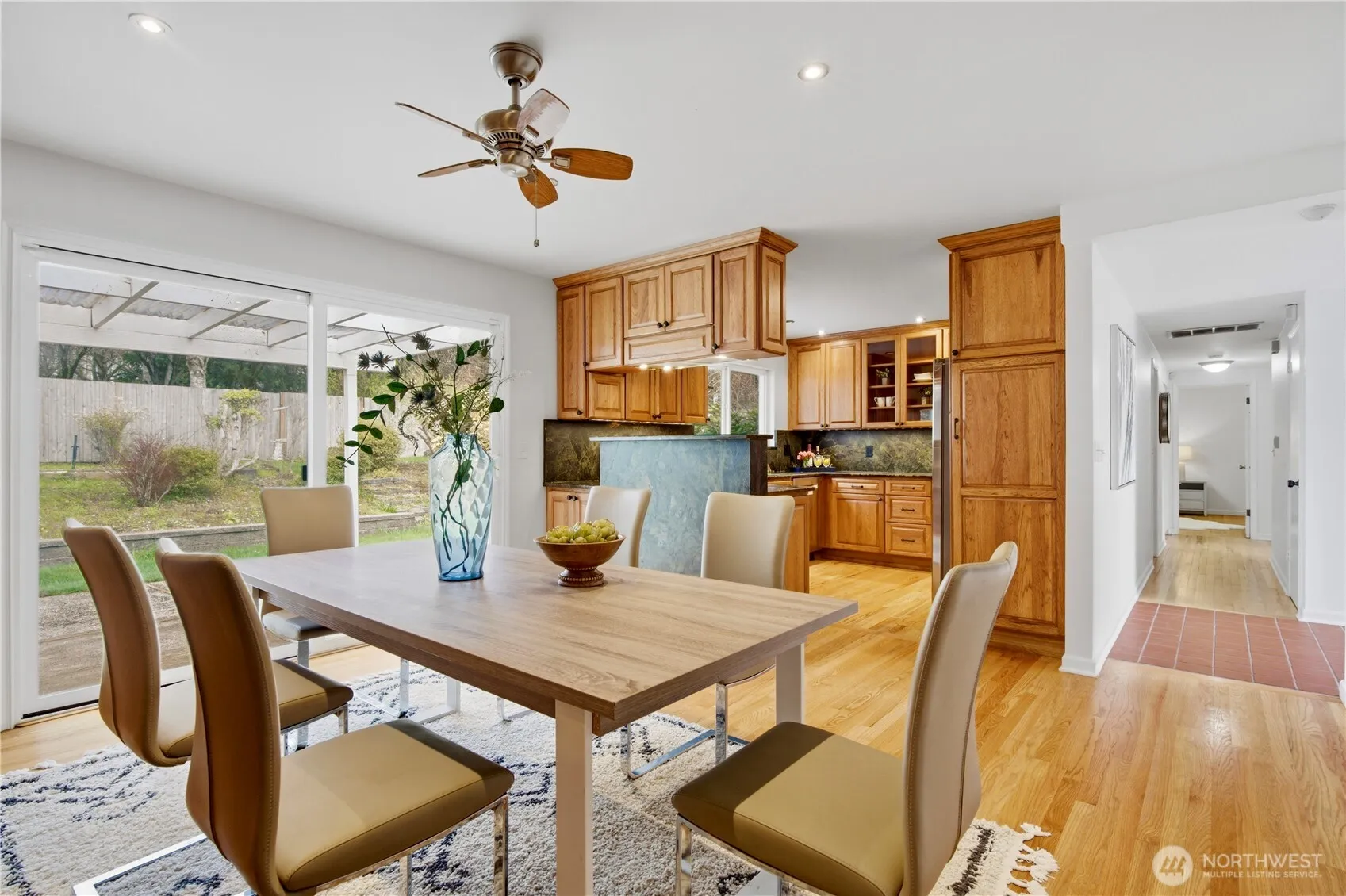 A beautifully reimagined one-story rambler situated on a big lot in Kirkland, where timeless style meets modern comfort—complete with central A/C for year-round ease. The chef’s kitchen is a true centerpiece, thoughtfully designed with custom craftsmanship, rare iridescent granite imported from Madagascar, and sleek soft-close cabinetry that blends elegance with everyday functionality. The intuitive layout offers two inviting bedrooms and a tastefully updated hall bath, while the tranquil primary suite serves as a private retreat, featuring a spa-inspired ensuite adorned with Italian ceramic tile and a sophisticated walk-in shower. Step outside to a covered outdoor living space—perfect for entertaining or unwinding in any season—overlooking a beautifully manicured yard framed by mature landscaping and a charming assortment of fruit trees. Ideally located near public transportation, local dining, and endless outdoor recreation, and located within the award-winning Lake Washington School District. Just minutes to the famous Village at Totem Lake and vibrant neighborhood amenities. This home effortlessly blends comfort, convenience, and classic Northwest charm. A great home to live in and a wonderful opportunity to invest.