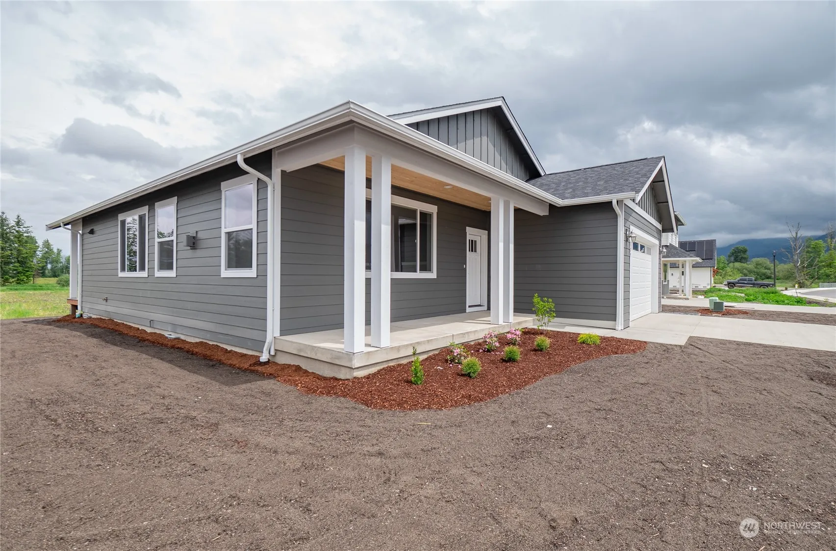 Welcome to Whispering Meadows. Immaculate new construction home in one of the newest developments in Nooksack. This 3 bed/1.75 bath has it all. As you walk through the front door you’ll notice how open & spacious this floor plan is with the vaulted ceilings throughout the kitchen, dining & living room. Kitchen features soft close cabinets, a large island with seating, quartz countertops, Stainless Steel appliances. Enjoy the huge back yard & the amazing views of the mountains off in the distance. Primary bedroom features vaulted ceilings, walk-in shower, double vanity, & a huge walk-in closet. Ductless mini splits to keep you cool in the summer & warm in the winter. All of this within walking distance to Nooksack Elementary & Middle School.