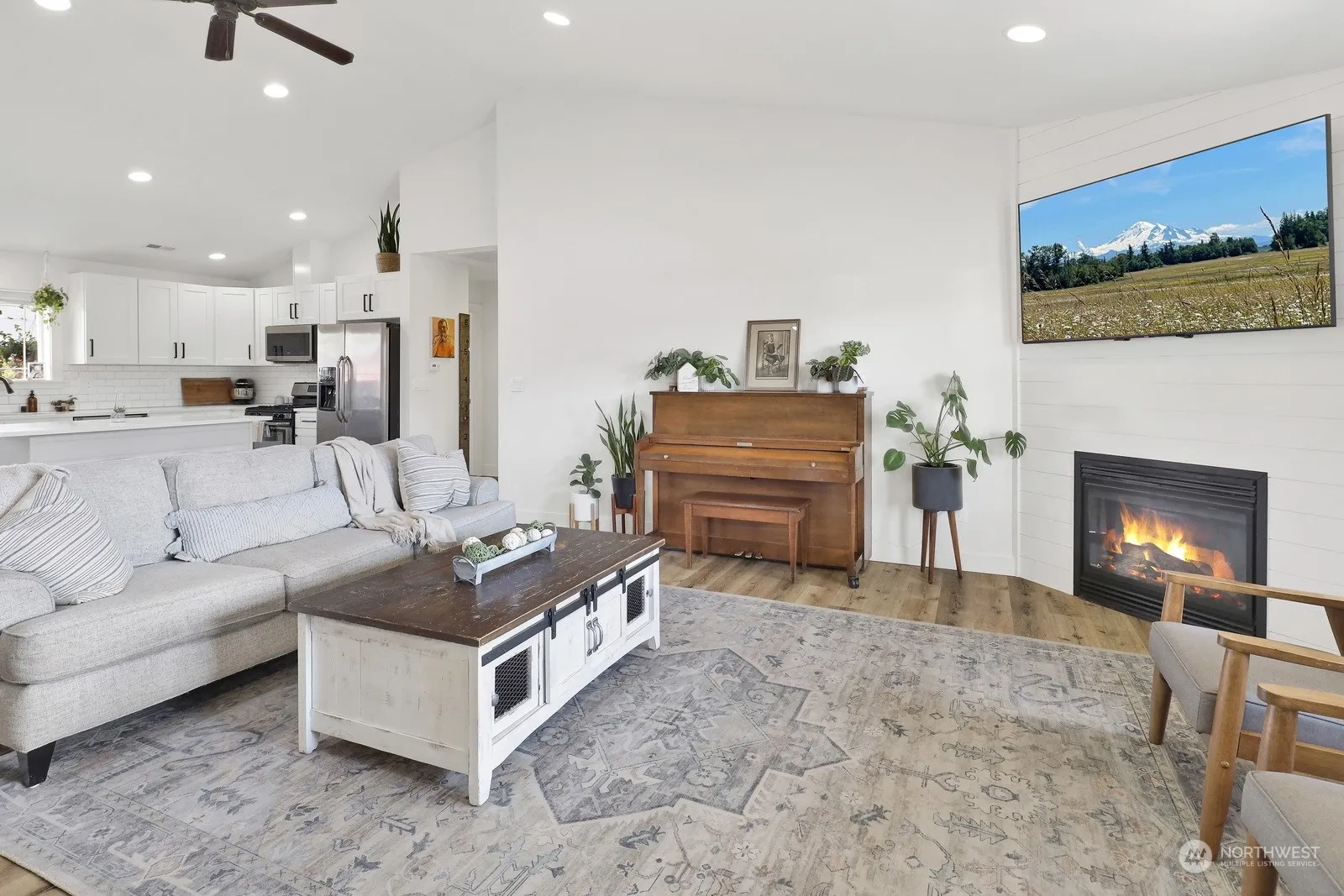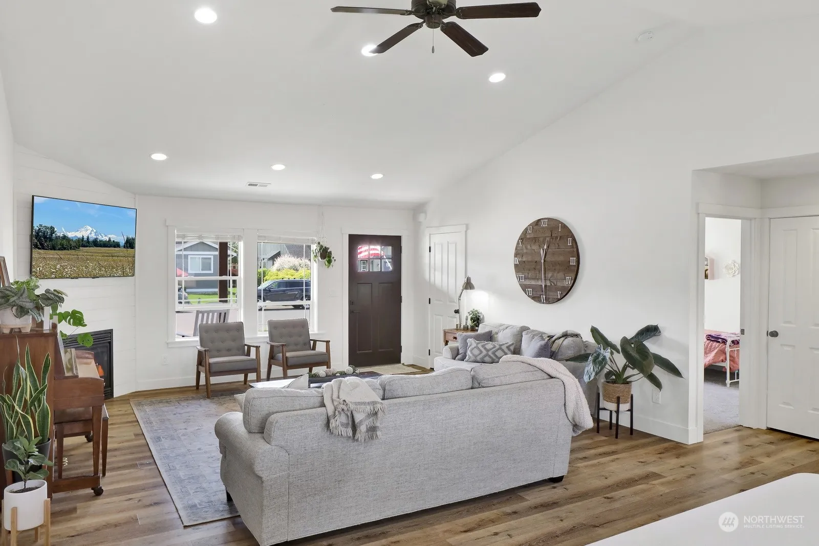 Step into this beautifully updated Nooksack gem, built in 2013 and brimming with modern upgrades! Revel in the all-new floors, cabinetry & fresh paint that elevate this home’s charm. The great room design features soaring vaulted ceilings & cozy gas fireplace, perfect for gatherings. The lovely kitchen boasts a central island with bar seating, ideal for culinary adventures. Enjoy the privacy of the split bedroom design; the inviting primary suite features a walk in closet & lovely en suite. Ceiling fans in all bedrooms. Separate utility room with sink. Outside, the expansive 10,890 sq ft lot is fully fenced, featuring a massive 25 x 27 aggregate patio added recently, perfect for outdoor entertaining. This lovely home is a must-see!