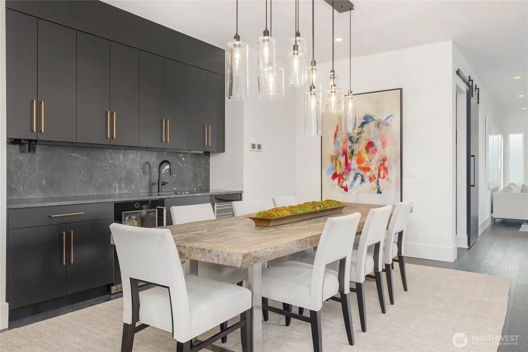 Timeless elegance meets bold design in this contemporary retreat, commanding attention with striking aesthetics and sweeping views. Set in desirable Houghton, just steps from Met Market & Lakeview Elementary. Rich black hardwoods anchor the main level, featuring a sleek chef’s kitchen with moody cabinetry, waterfall quartz island, & Thermador appliance suite with steam oven. Entertain in the expansive great room with linear gas fireplace & high-end audio system that flows to a heated view patio & turf yard. A dining room perfect for hosting, complemented by a guest suite, 3/4 bath, & private office. Upstairs find 3 en-suites including a luxurious primary with heated floors, dual shower, & absolutely giant closet. Access to a large view deck from primary & bonus room. Above it all, the rooftop deck offers stunning views of Lake Washington & Seattle skyline. Oversized 2 car garage wired for EV charging, elevator, hydronic heated floors, backup generator & fully motorized shades elevate everyday living in this exceptional home.