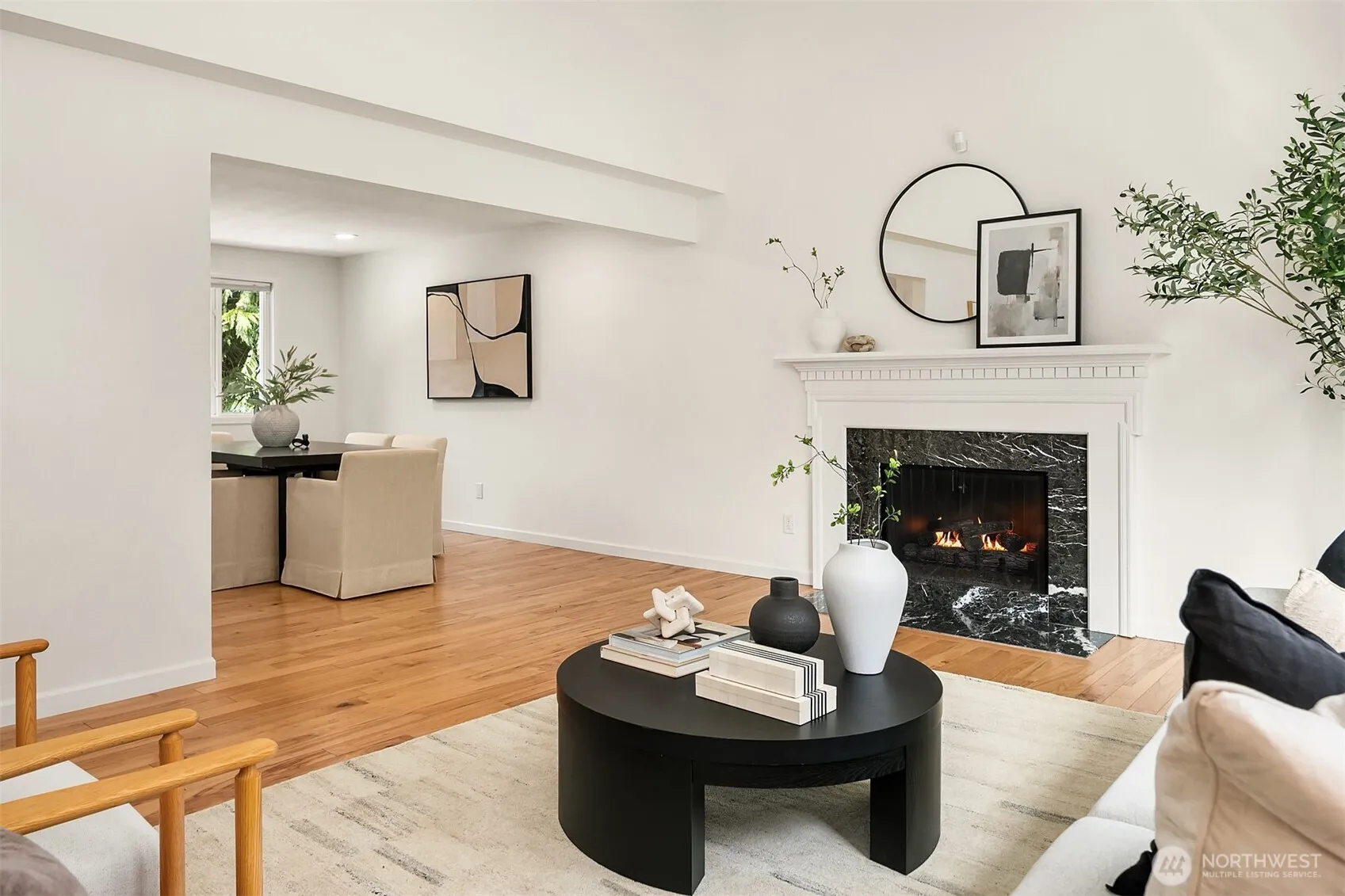 Thoughtfully refreshed and move in ready, this Rose Hill home pairs classic character with modern updates throughout. The home is elevated by all new interior and exterior paint, new windows, updated millwork, fixtures, 30 year roof, and new recessed lighting that brings warmth and dimension to every space. Hardwoods flow throughout the upstairs, with vaulted ceilings in the living room that create an airy sense of volume, centered around a charming wood burning fireplace. The refreshed kitchen features stainless steel appliances, new lighting, updated cabinetry with abundant storage and flows seamlessly to the dining area, spacious deck, and fully fenced backyard with irrigation, creating an effortless indoor-outdoor connection. Three bedrooms on the main level, including a large primary with attached 3/4 bath. The lower level offers flexibility with a large rec room and potential 4th bedroom with new carpet, along with a bathroom and utility room. Complete with a two-car garage and set on a quiet cul-de-sac near Mark Twain Elementary School, this home offers both convenience and a sense of neighborhood, just minutes from Totem Lake Village, downtown Kirkland, and major tech hubs.